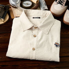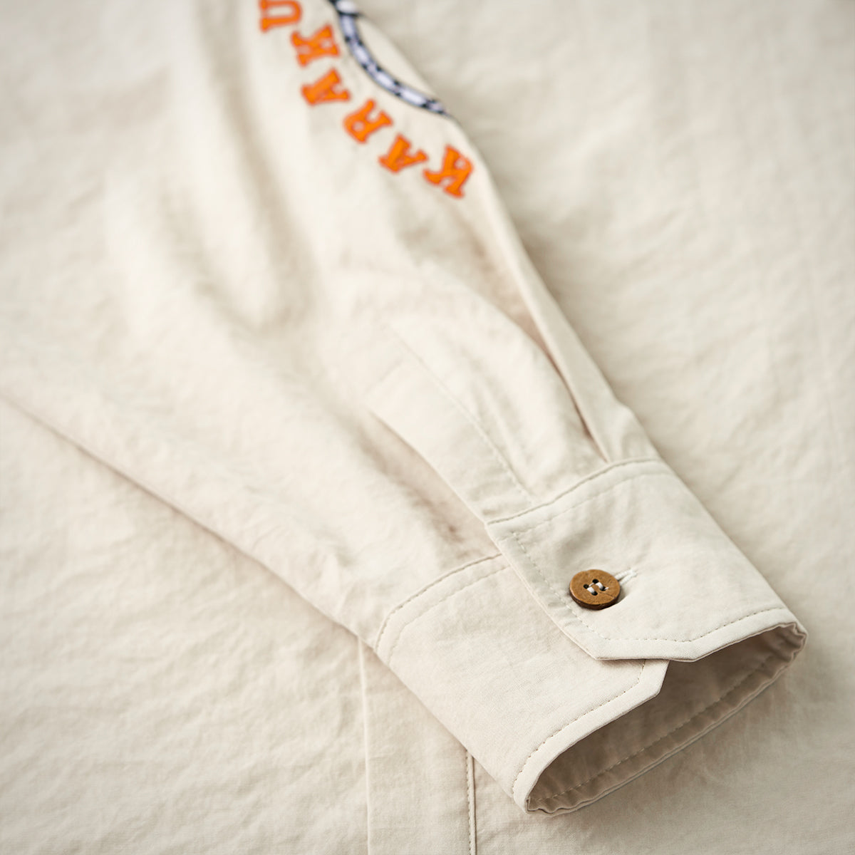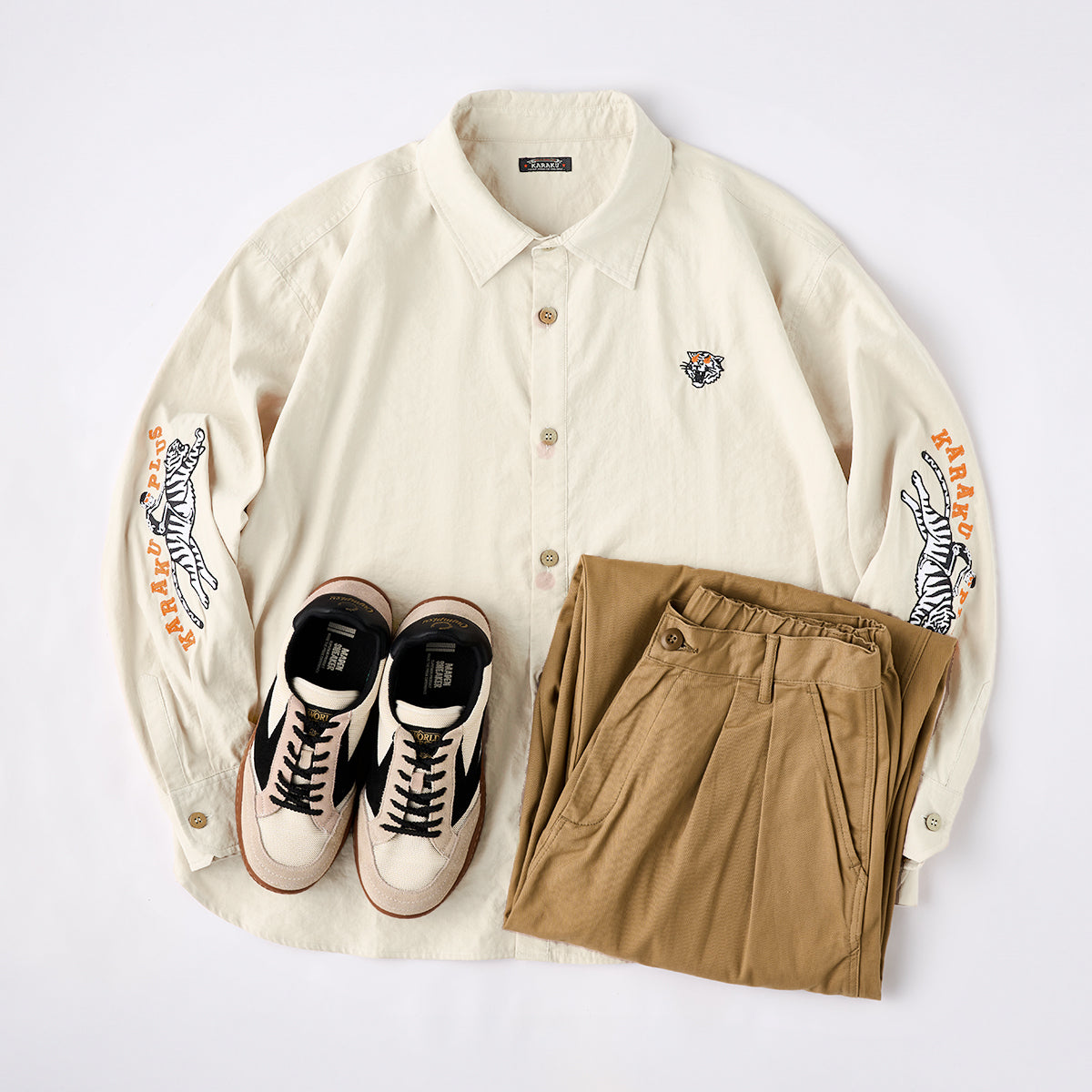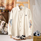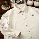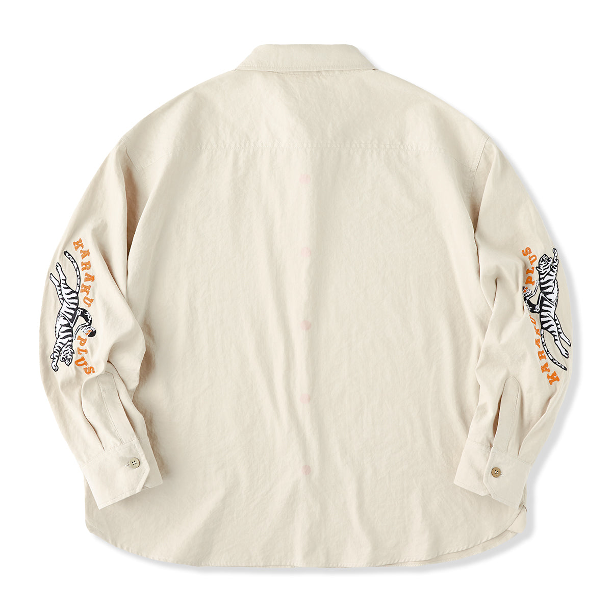 「포효하는 호랑이 & 스컬 라이더즈」자수 피치스킨 긴팔 셔츠