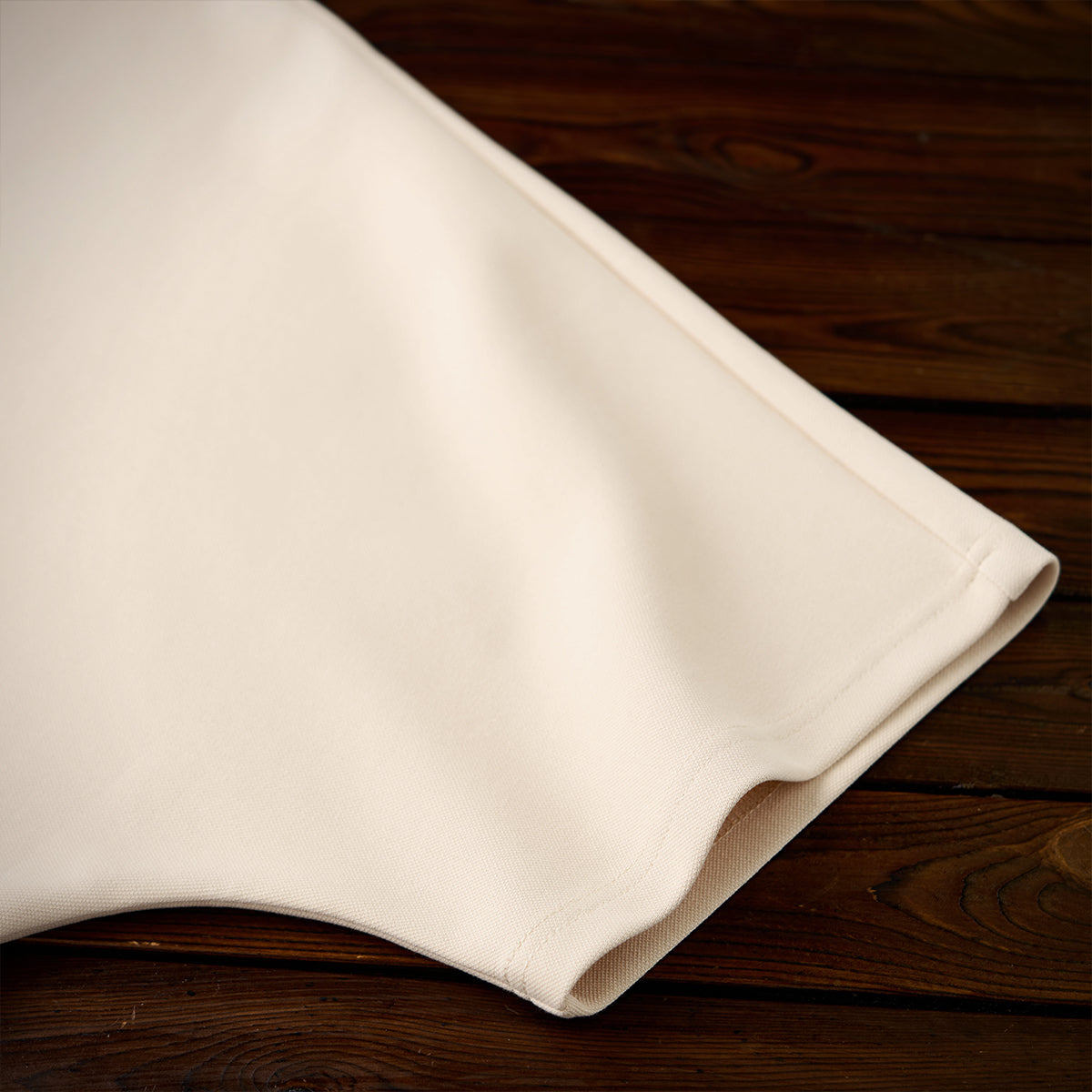 It uses air layer material mixed with cotton and polyester to maintain a soft and comfortable feel. It does not get sticky even when sweaty, so it is good to wear in the summer.
