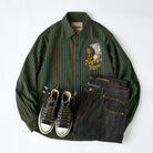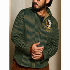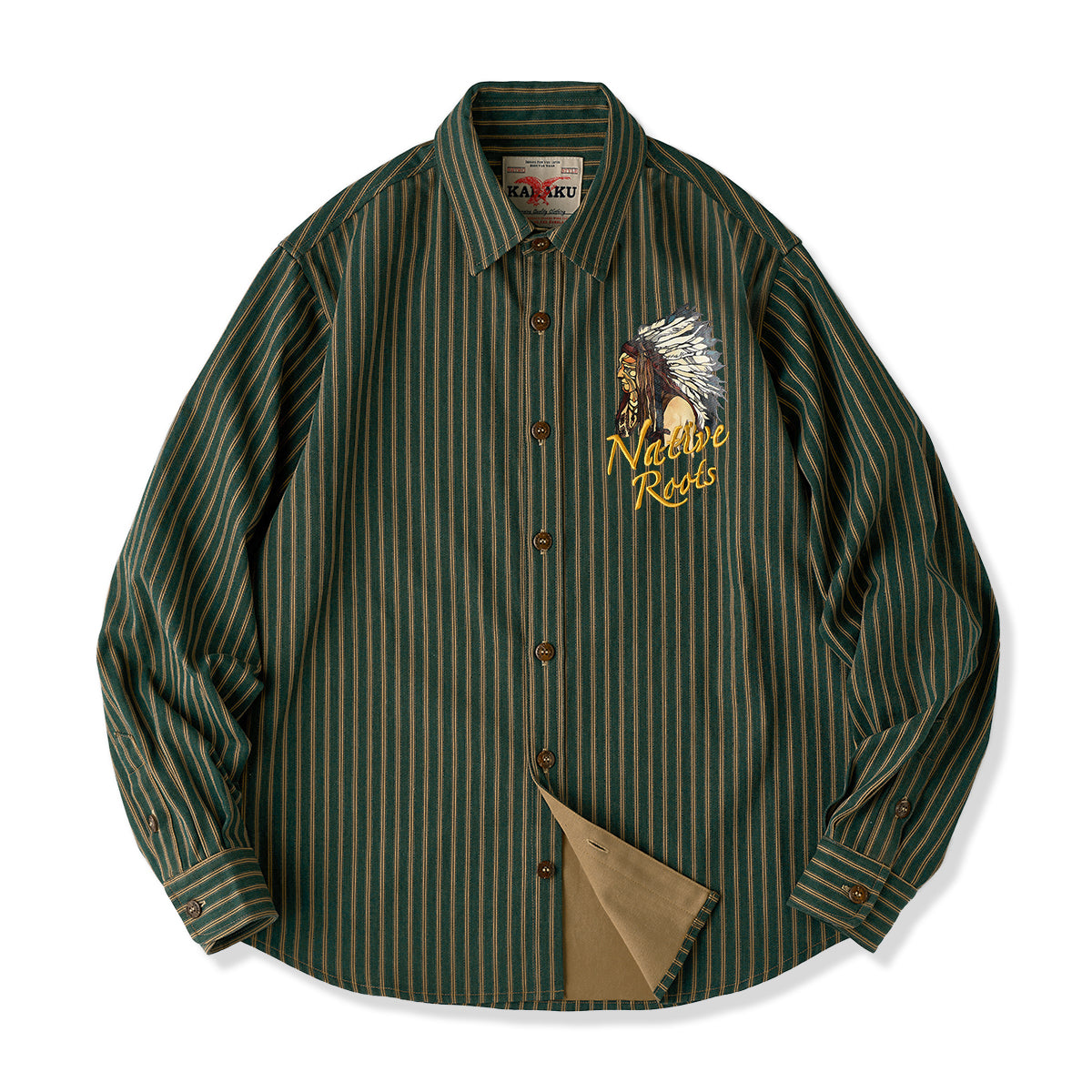 인디언 추장 프린트 & 자수 스트라이프 패턴 헤비웨이트 셔츠