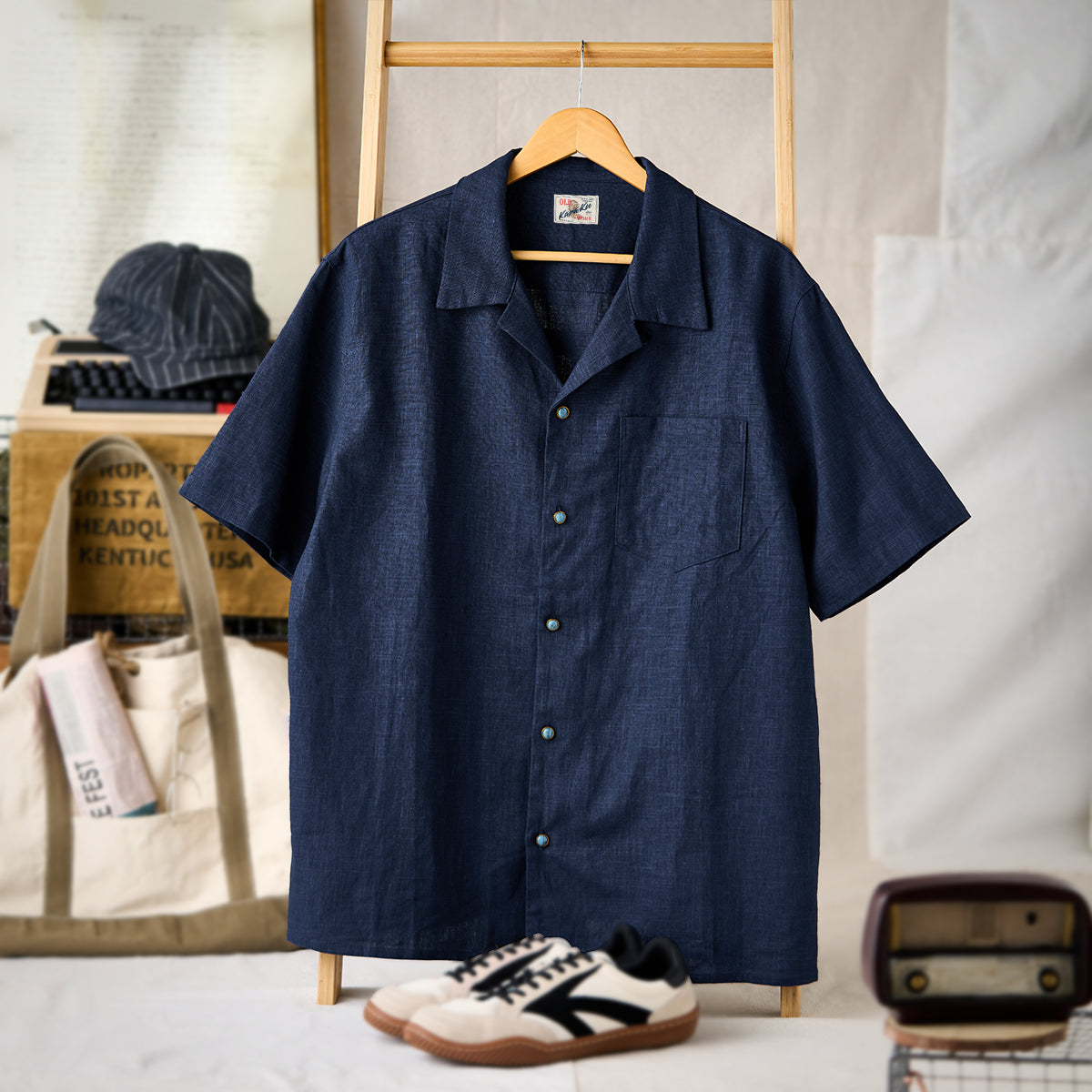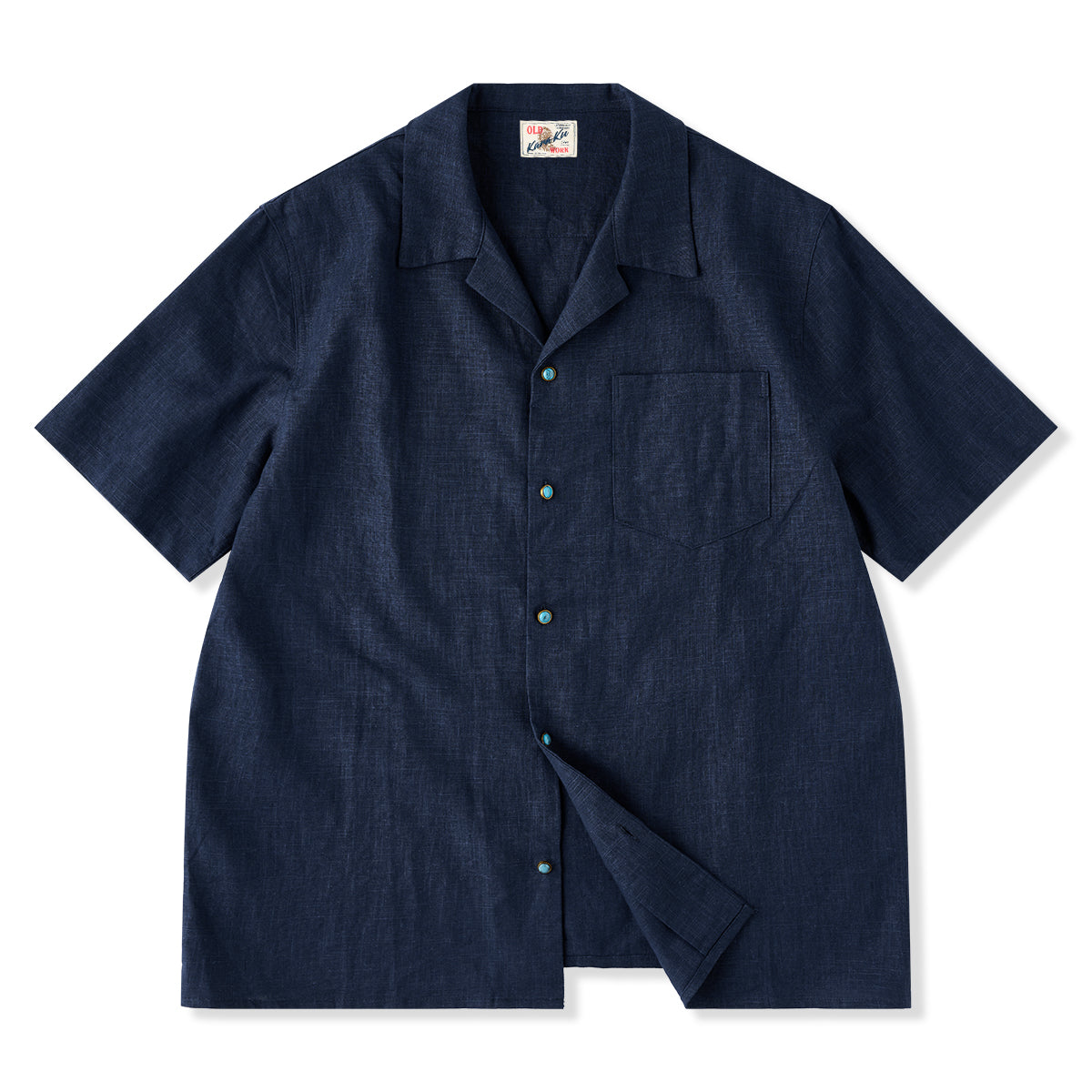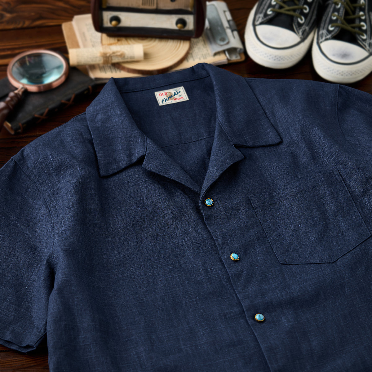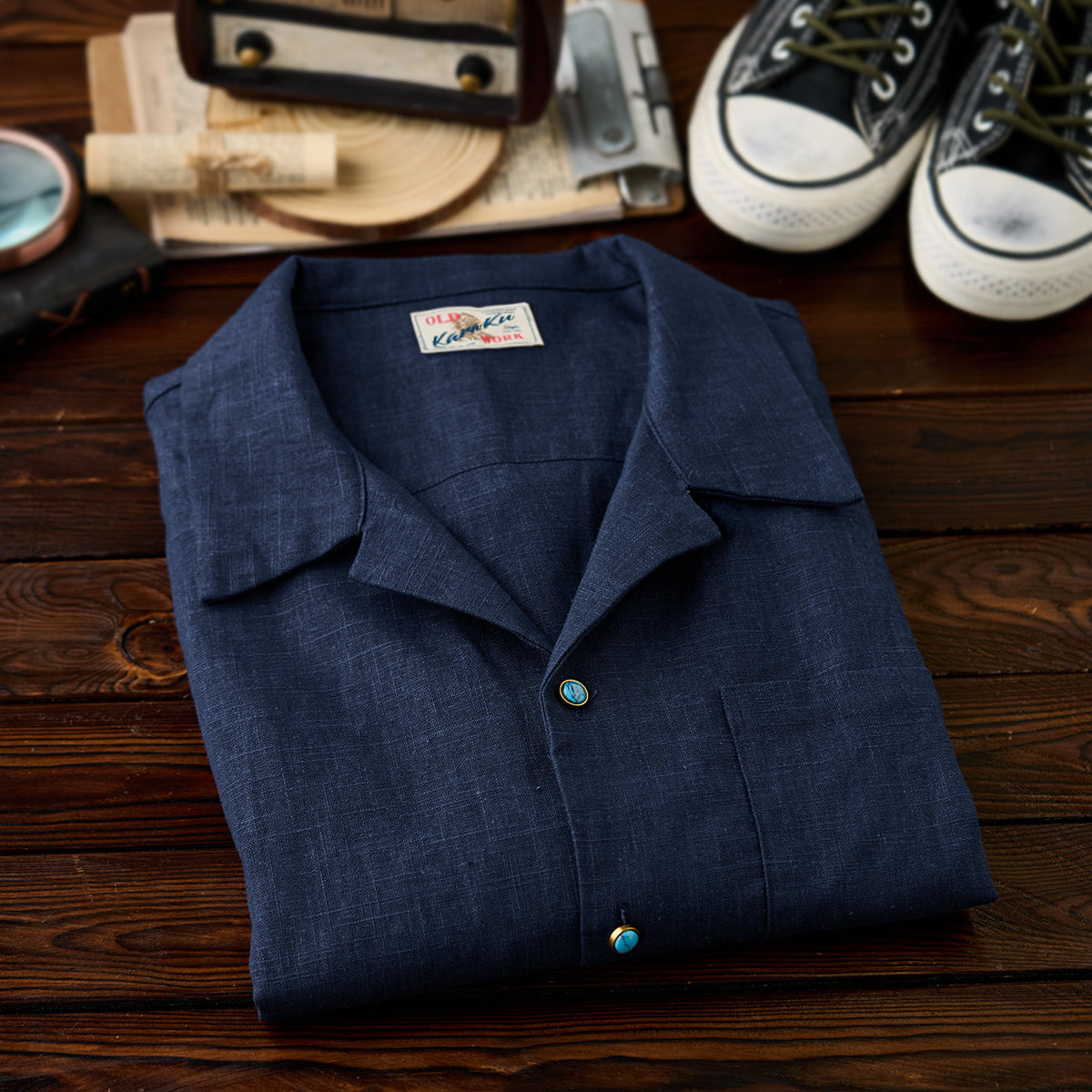 【Pre-order】Turquoise Button Linen Cotton Open Collar Shirt