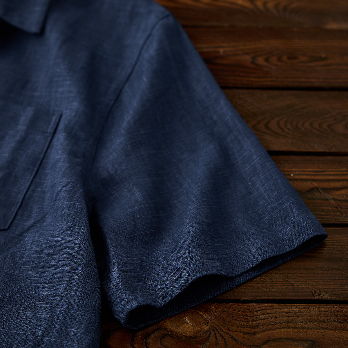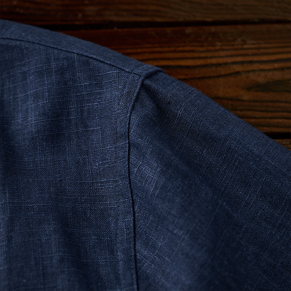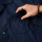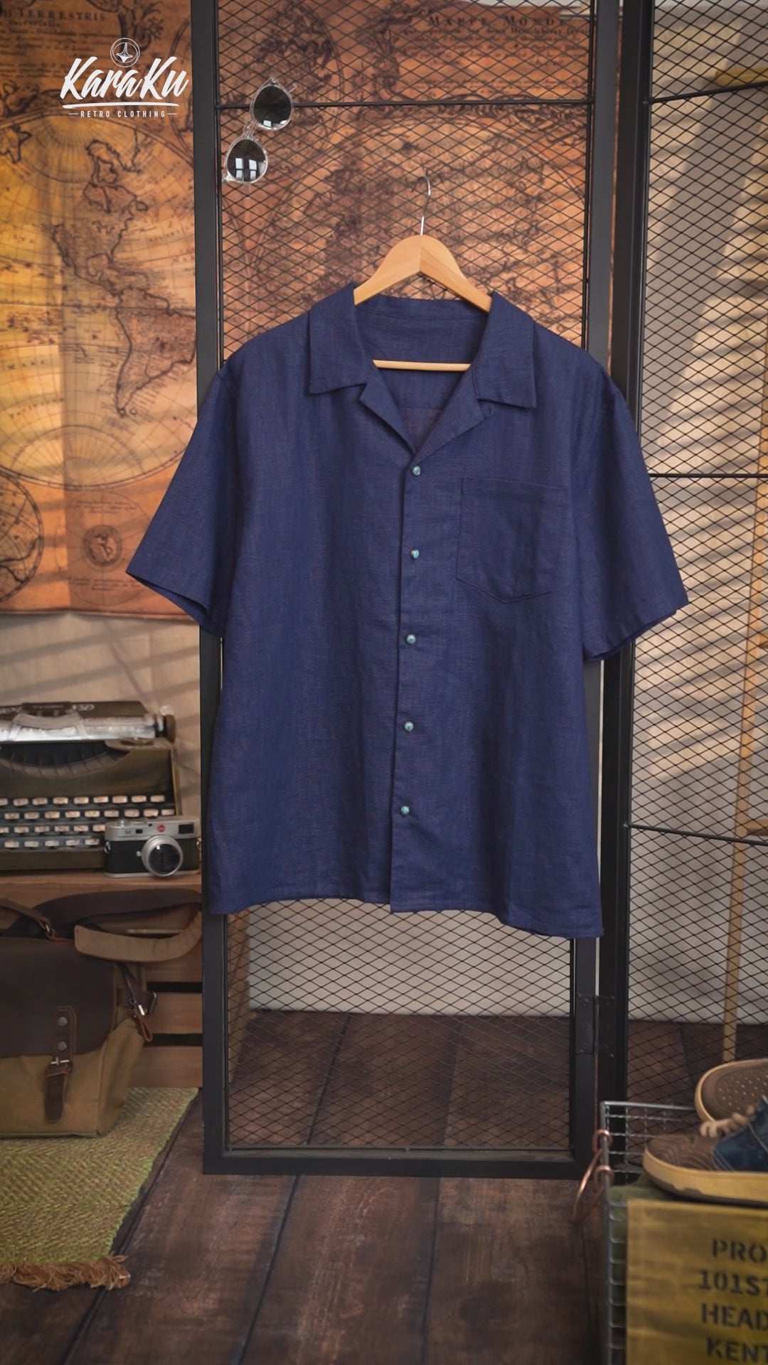 【Pre-order】Turquoise Button Linen Cotton Open Collar Shirt