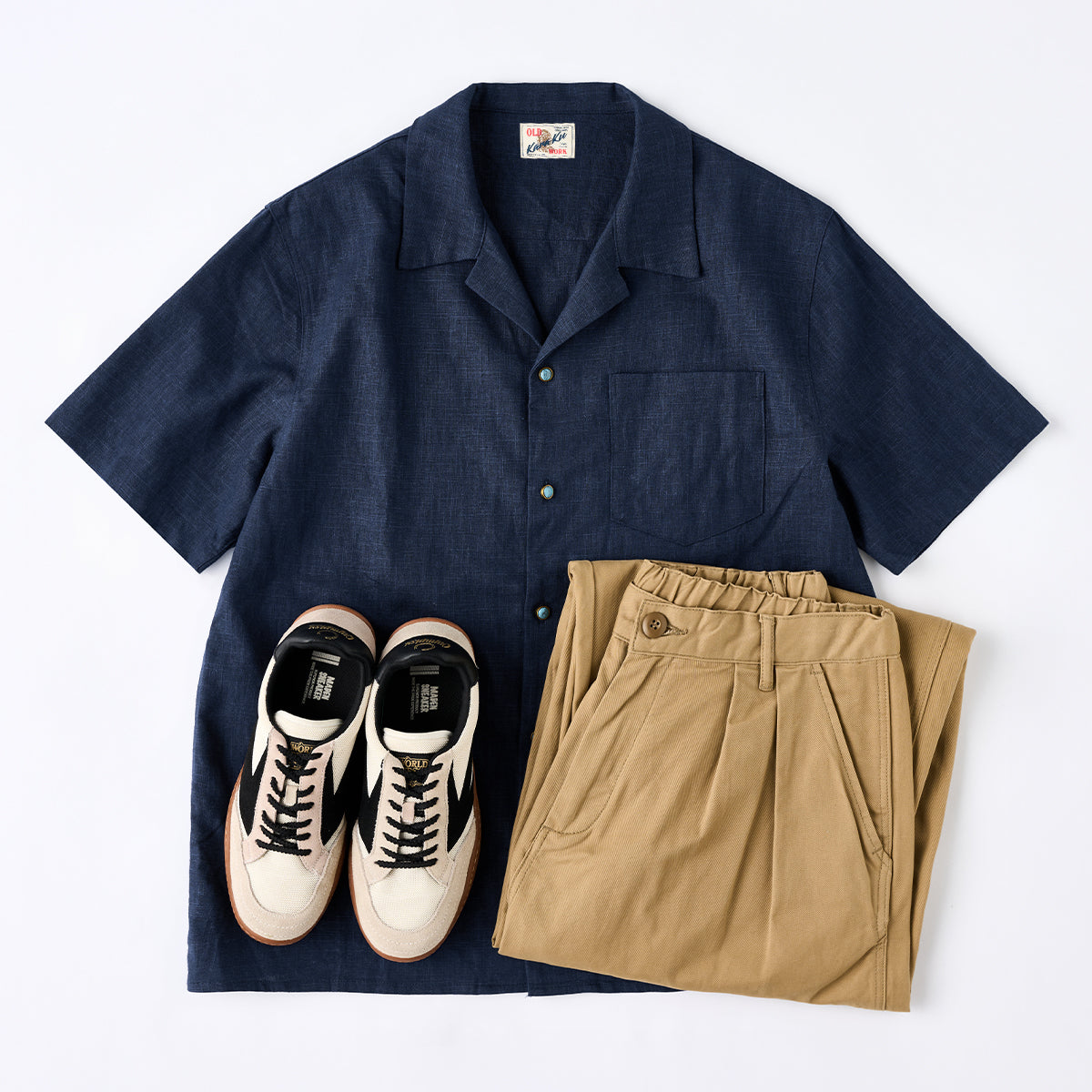 This is a high-quality shirt that creates a three-dimensional silhouette with a sophisticated Cuban collar, a loose fit with a relaxed feel and sleeve cut that takes activity into consideration, and a neat hem finish.