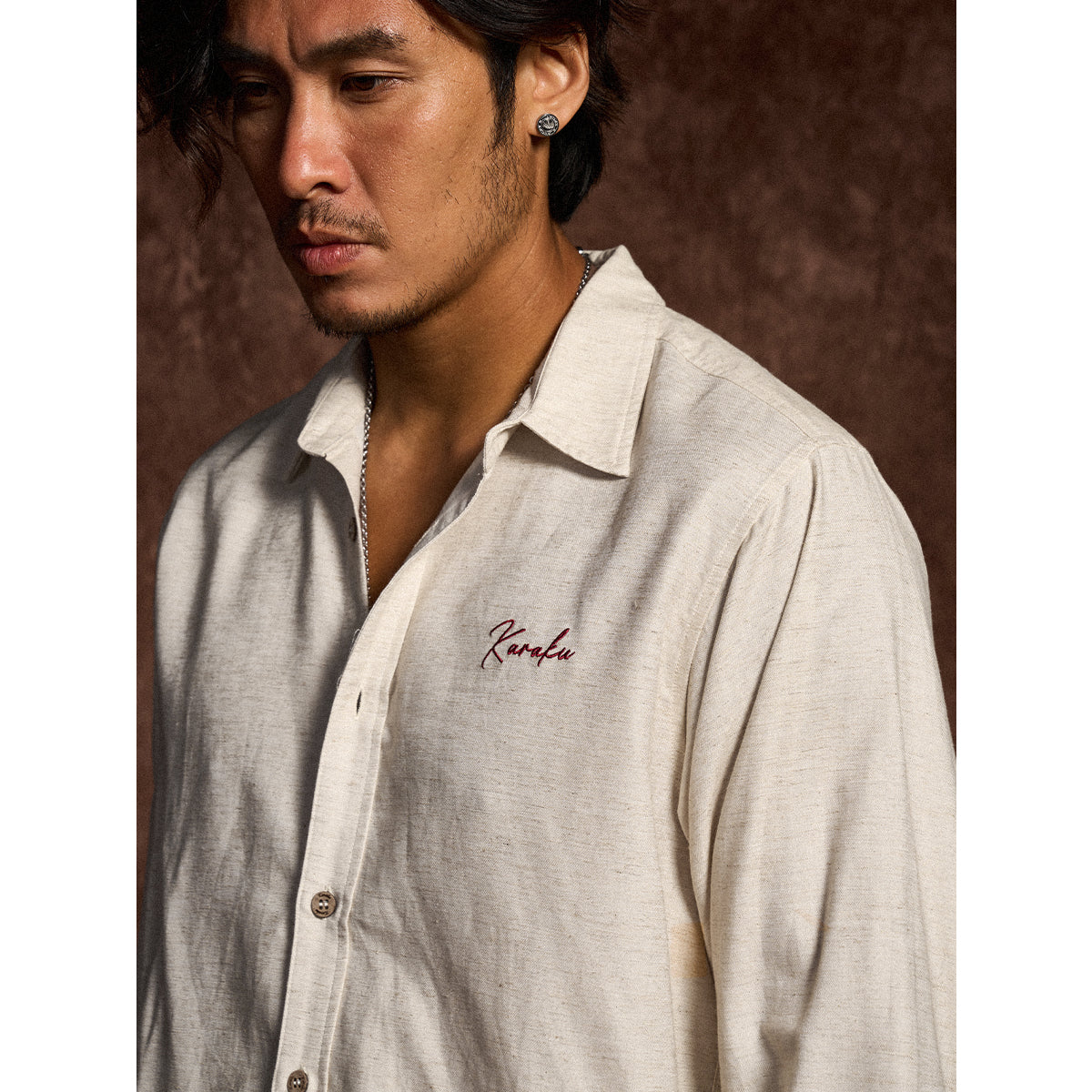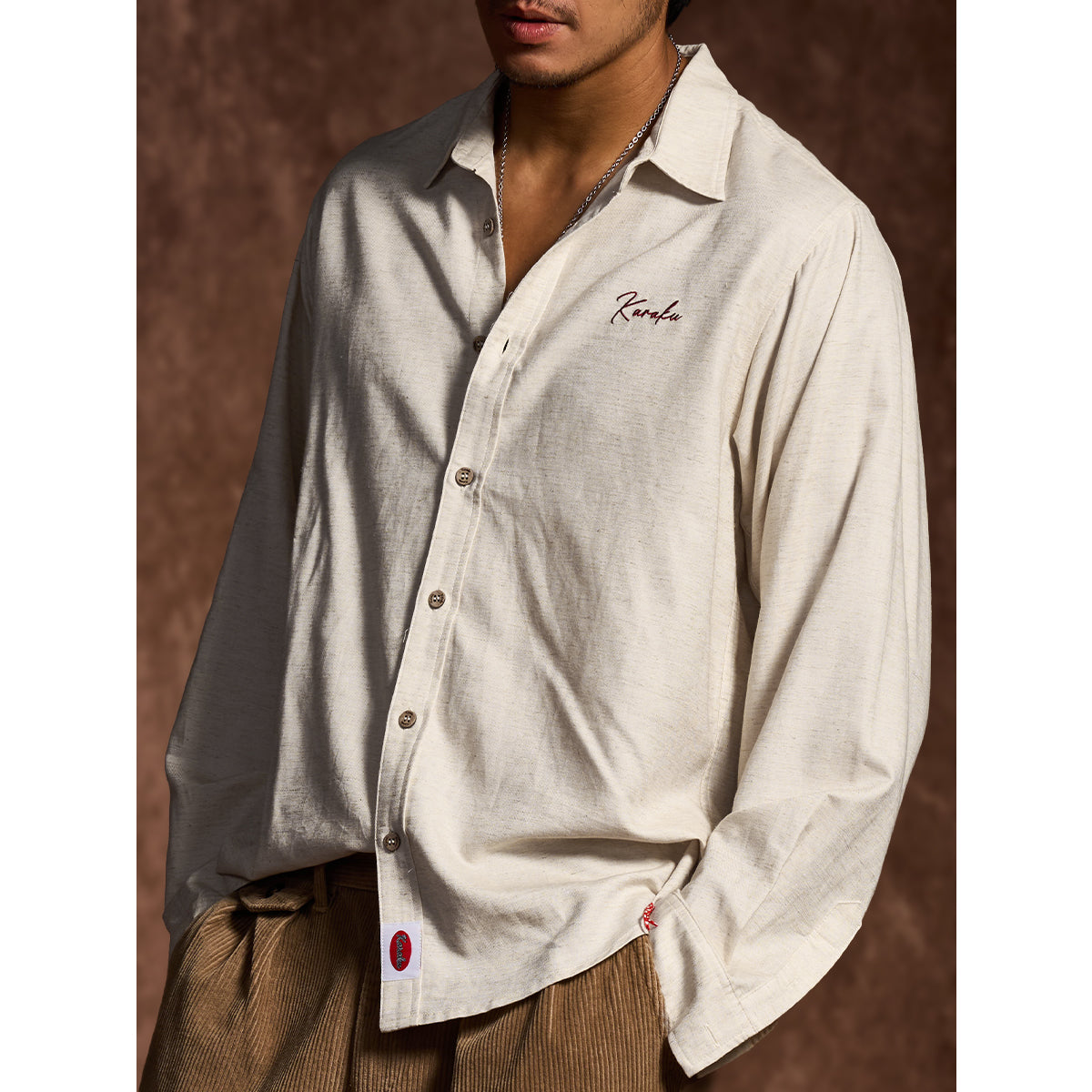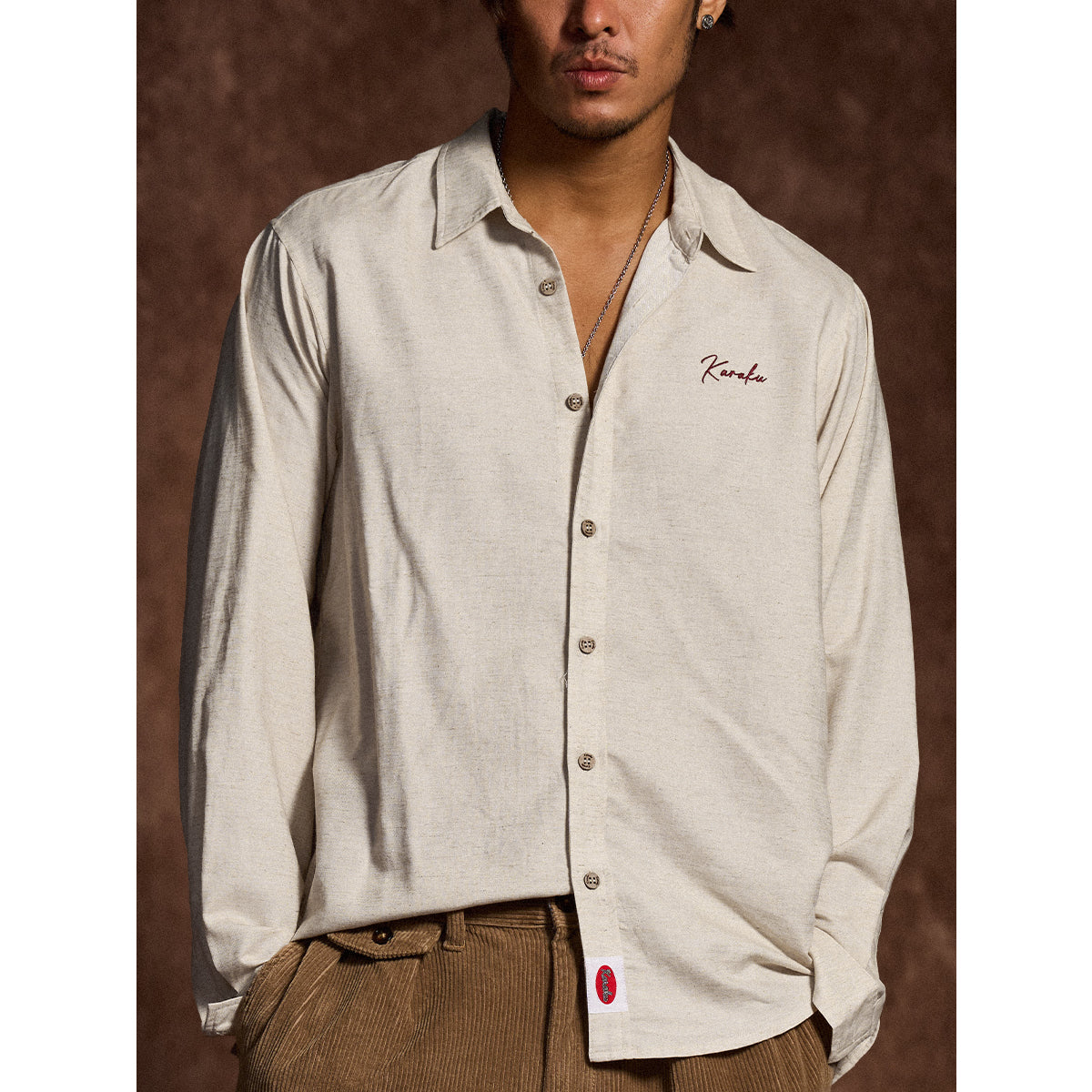 텐셀×리넨 혼방 소재로 고급스러운 광택과 쾌적한 착용감을 동시에 갖춘 긴팔 셔츠. Karaku 자수와 밑단 레드 스트링이 감각적인 포인트를 더하며, 릴랙스 핏으로 단독 또는 아우터로도 활용 가능합니다.