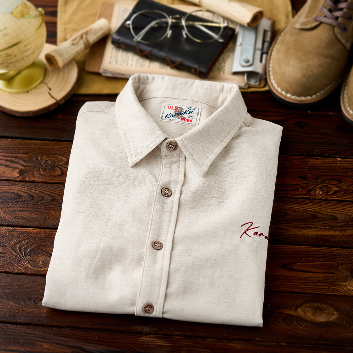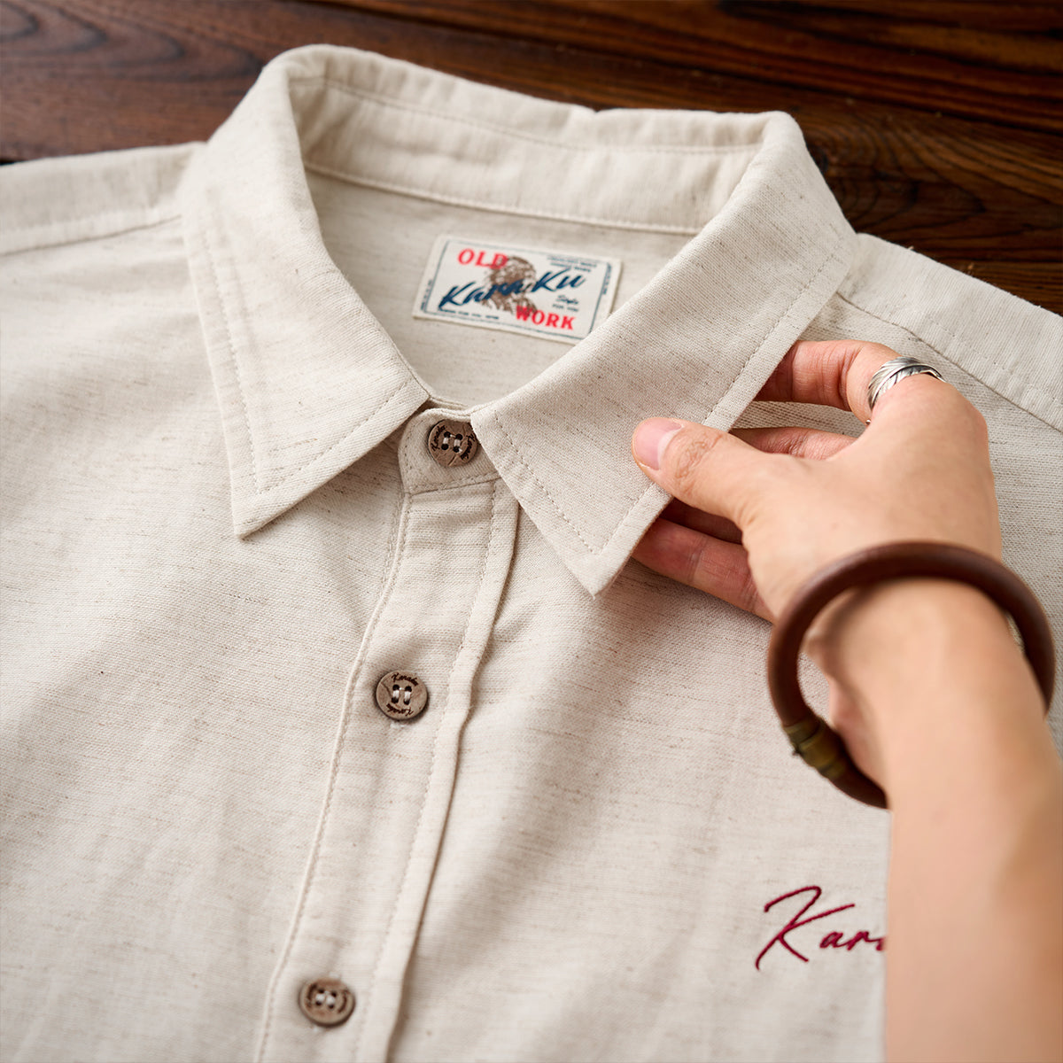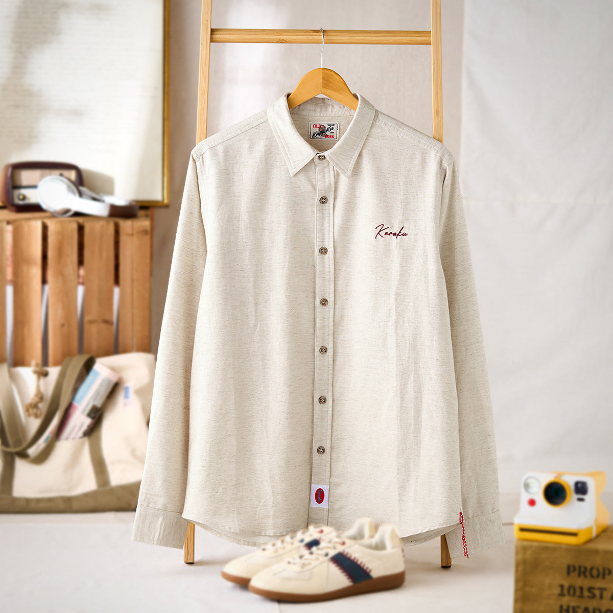 텐셀×리넨 혼방 소재로 고급스러운 광택과 쾌적한 착용감을 동시에 갖춘 긴팔 셔츠. Karaku 자수와 밑단 레드 스트링이 감각적인 포인트를 더하며, 릴랙스 핏으로 단독 또는 아우터로도 활용 가능합니다.