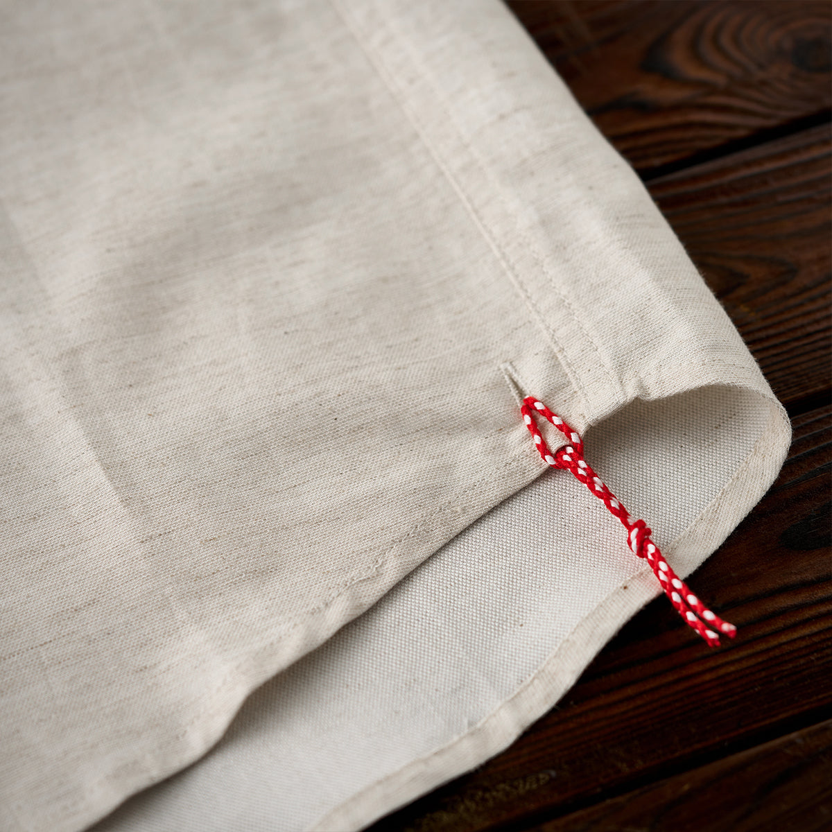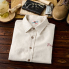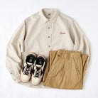 빨간 매듭 Karaku 자수 텐셀×리넨 혼방 긴팔 셔츠