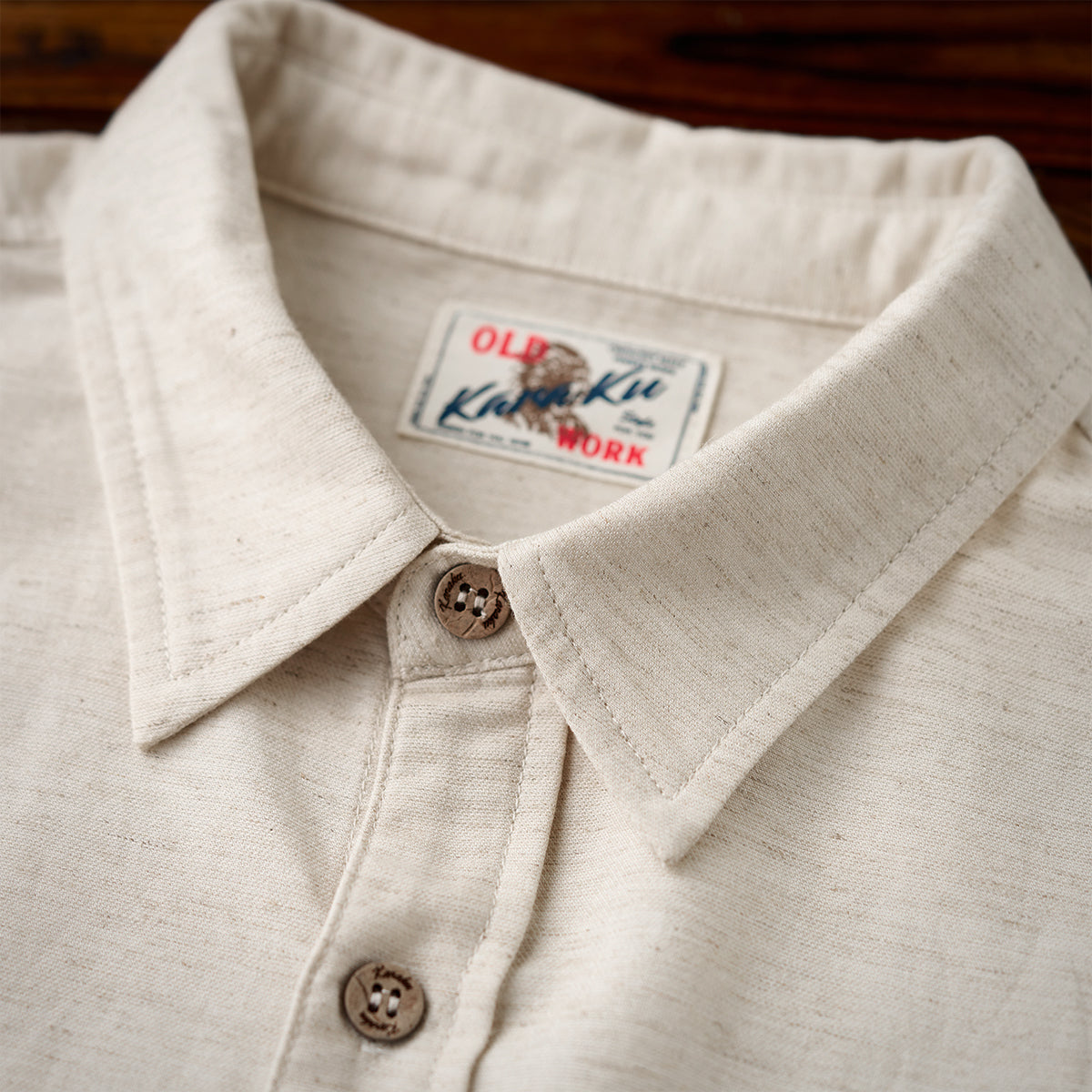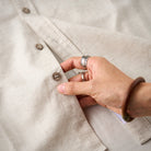 단추가 내추럴한 텍스처의 원단과 어우러져, 레트로하면서도 세련된 캐주얼 스타일을 완성해 줍니다.