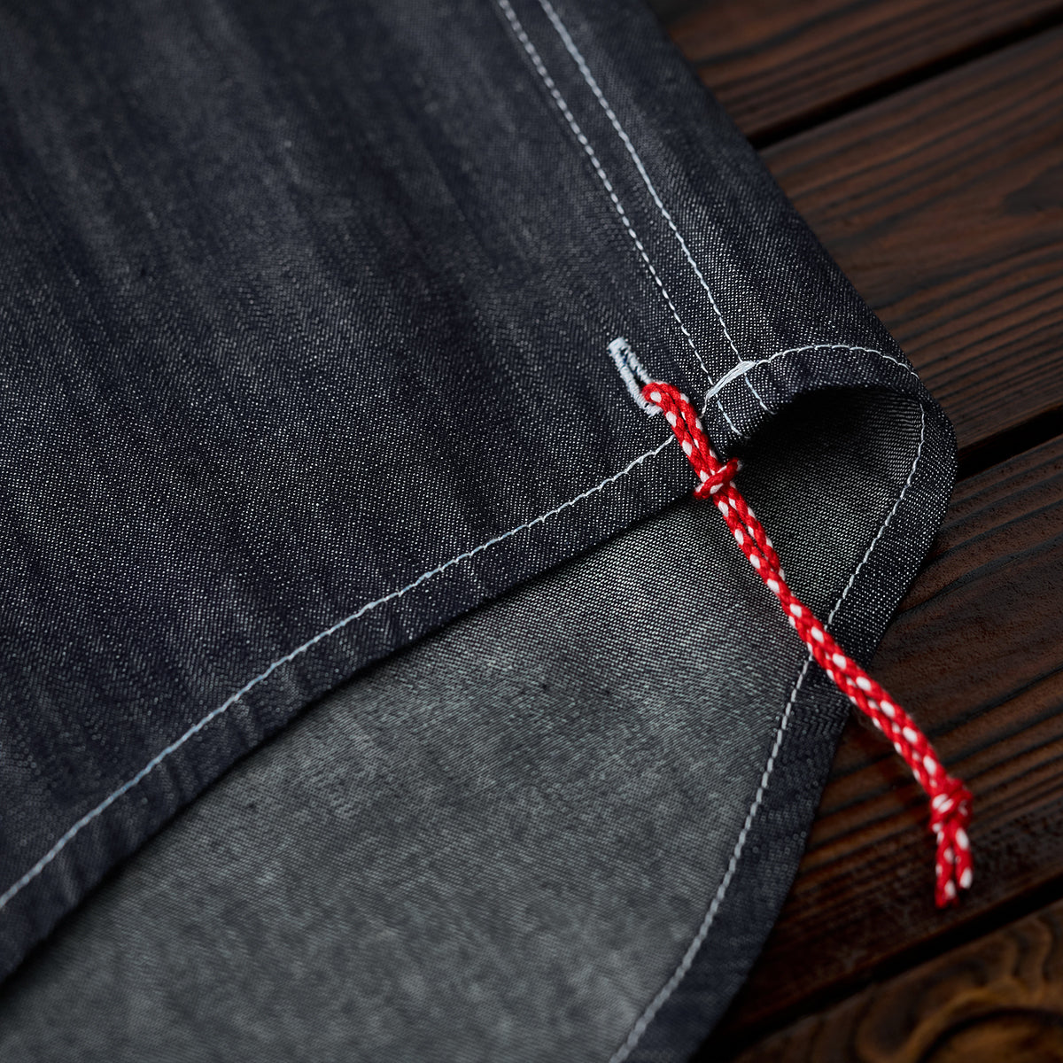 기본 데님 셔츠 밑단에 은은한 ‘빨간 끈’ 포인트를 더해 개성을 살린 특별한 아이템입니다.