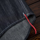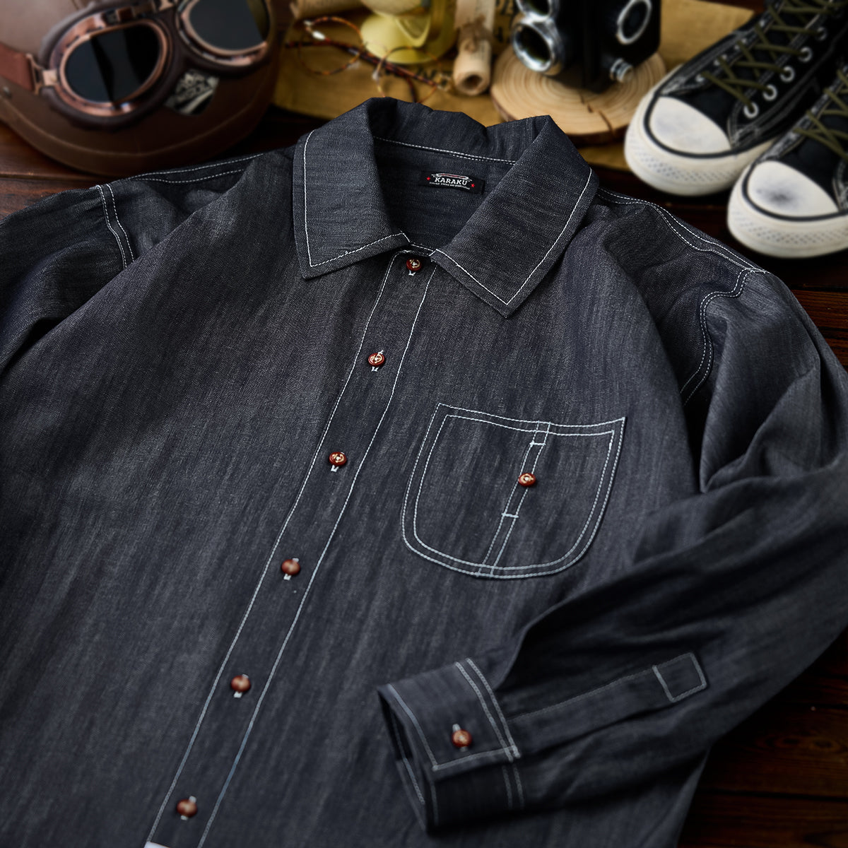 빨간 매듭 끈 앵커 버튼 화이트 스티치 데님 긴팔 셔츠