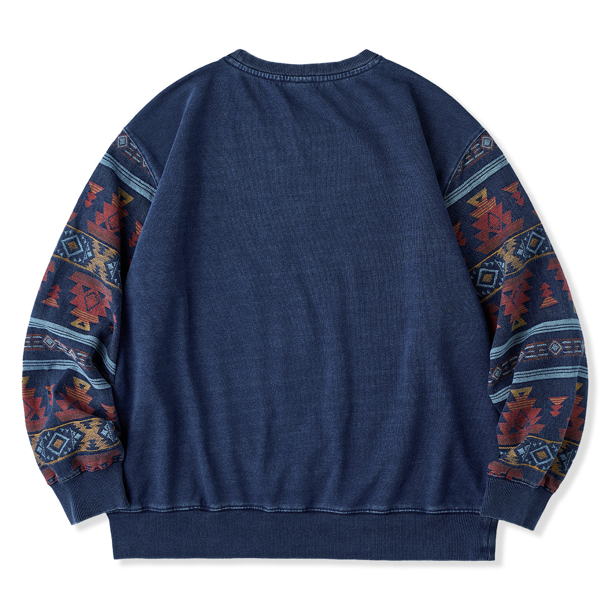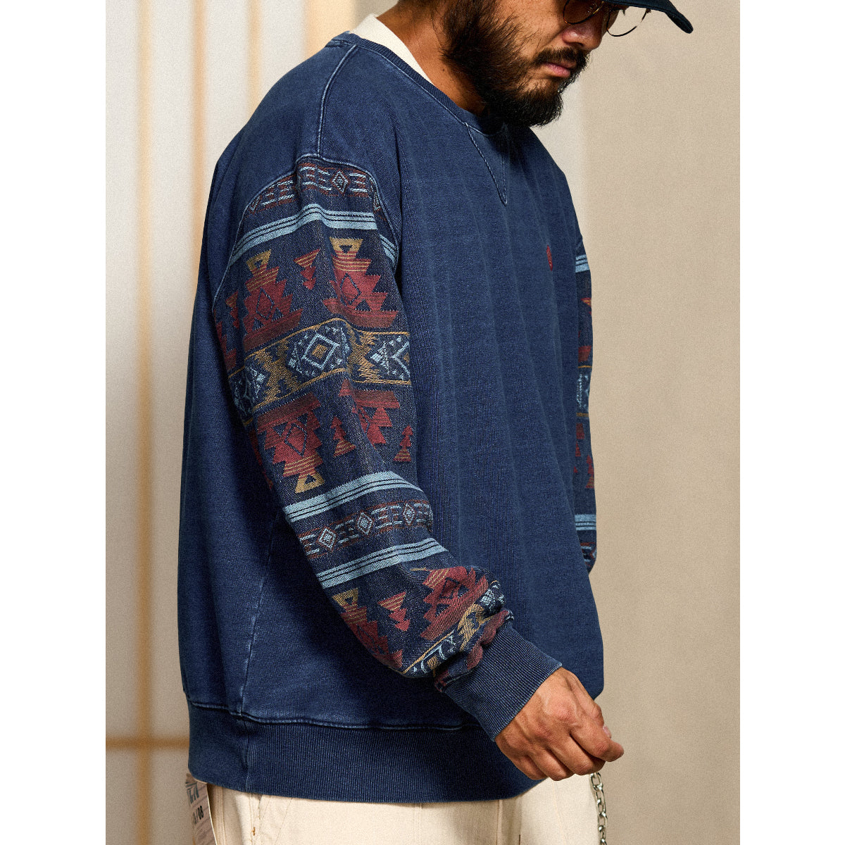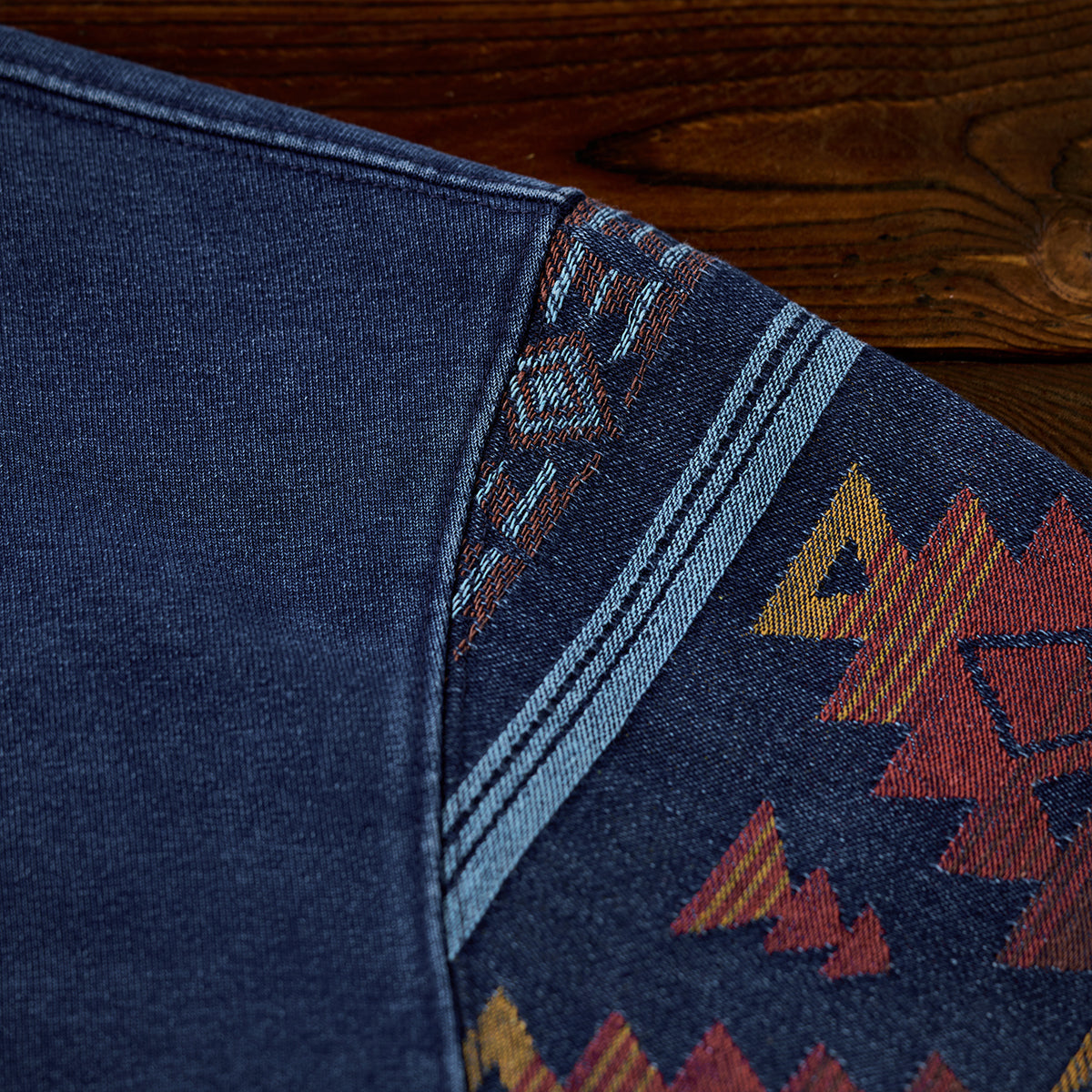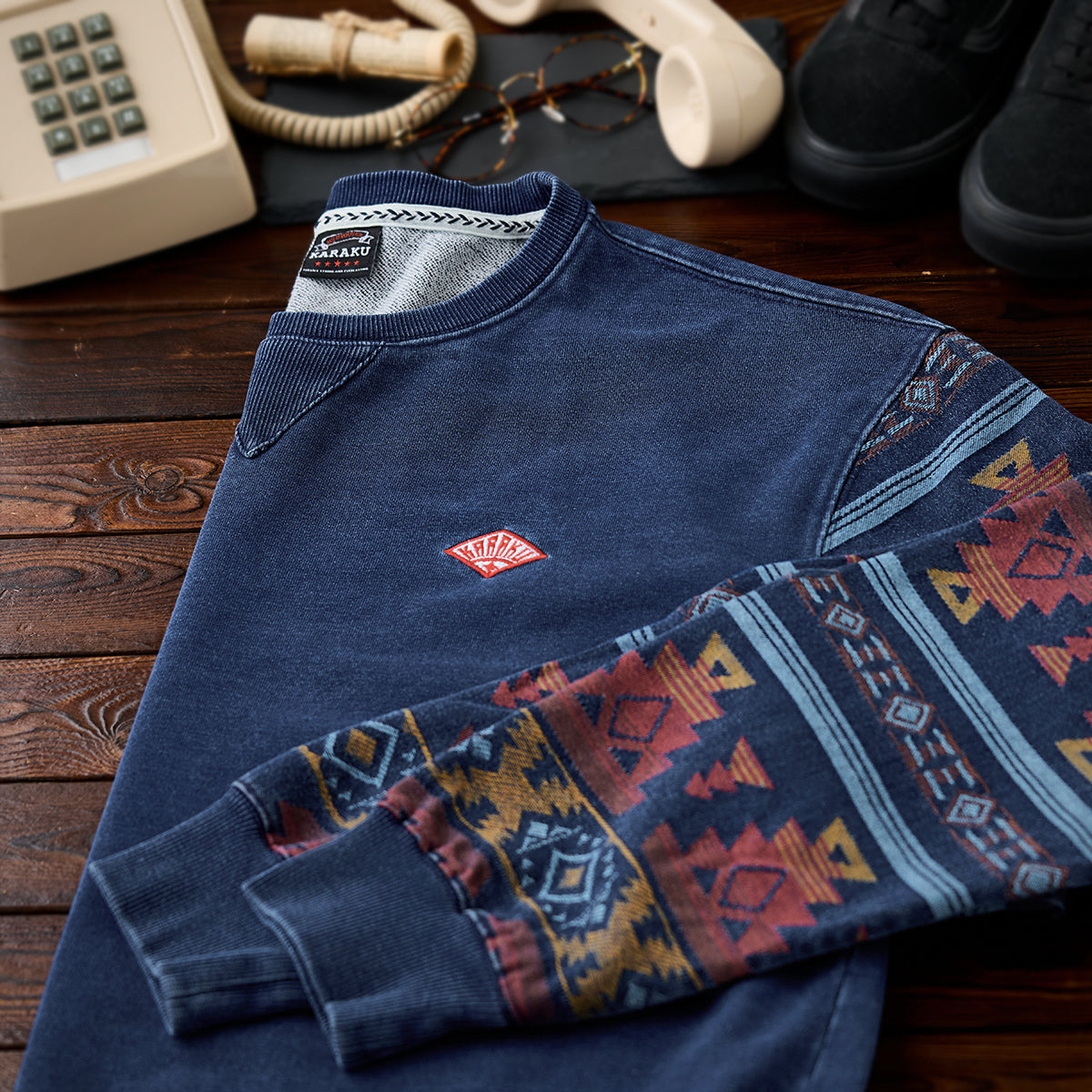 나바호 패턴 소매 Karaku 로고 자수 니트 데님 스웨트셔츠