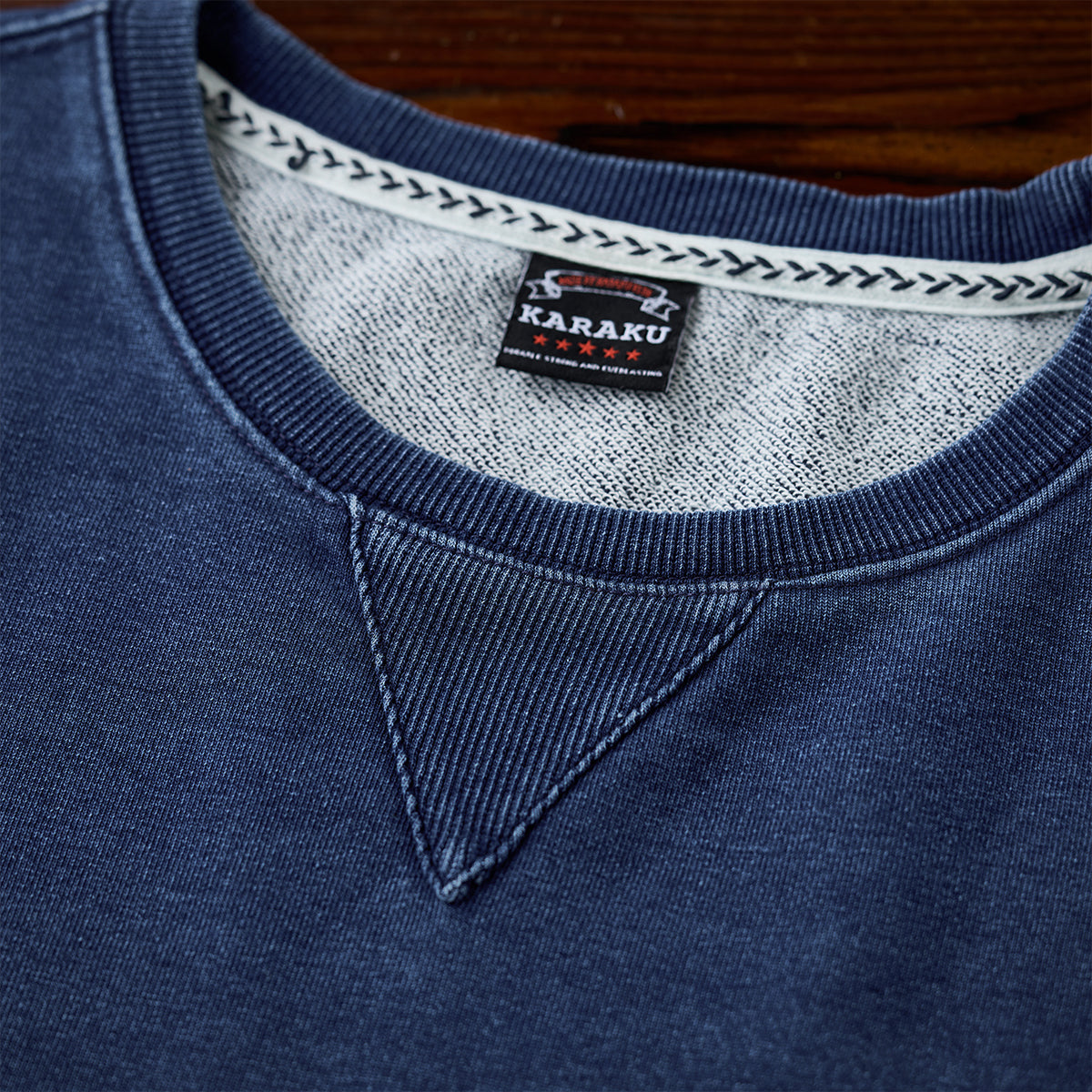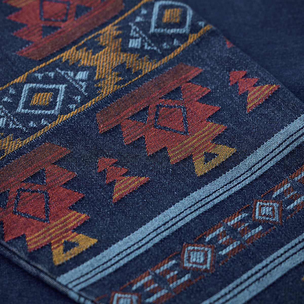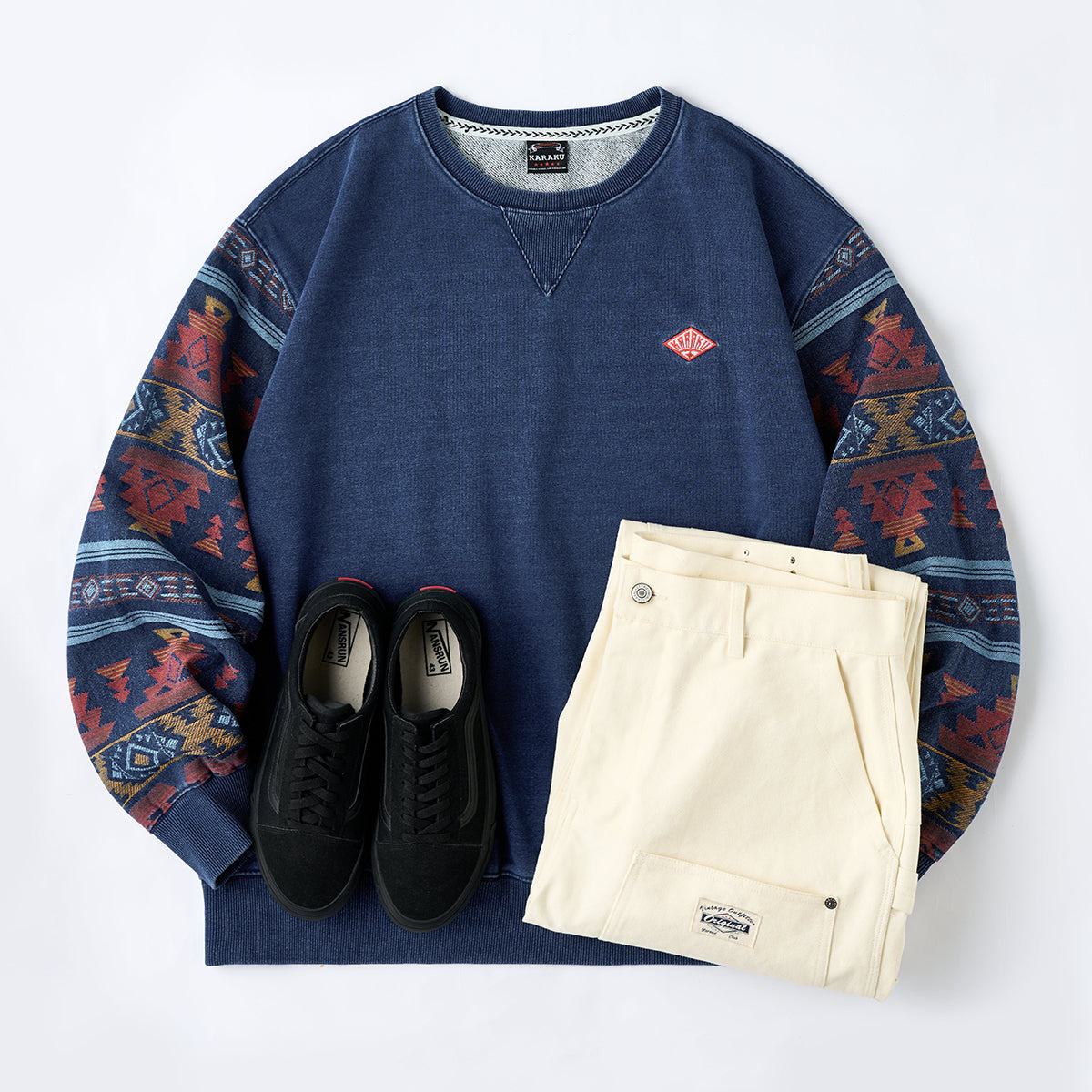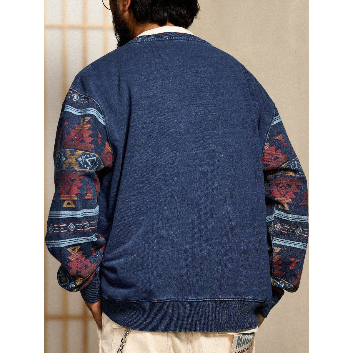 나바호 패턴 소매 Karaku 로고 자수 니트 데님 스웨트셔츠