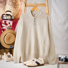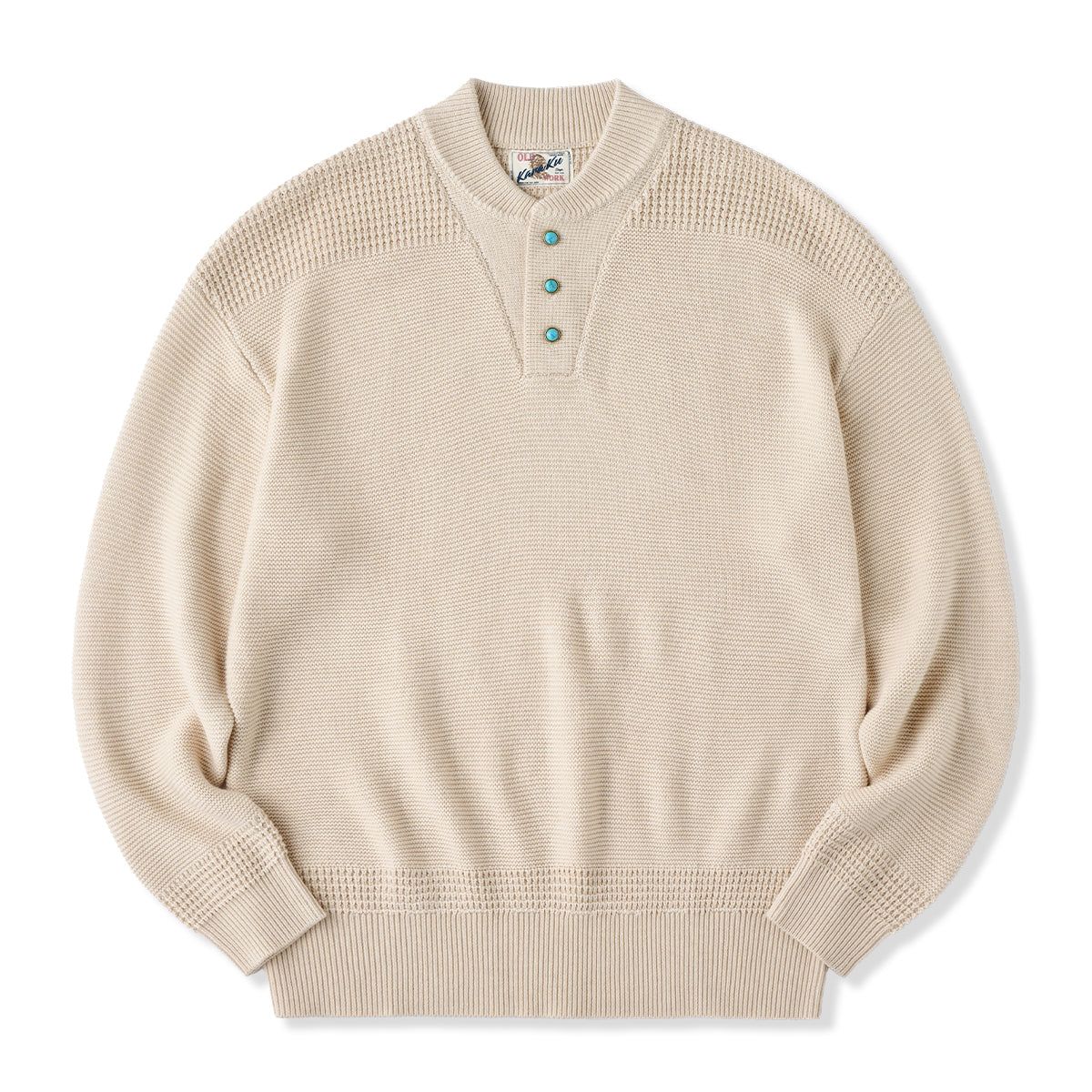 【사전예약】터키석 단추 배색 허니콤 조직 니트 스웨터