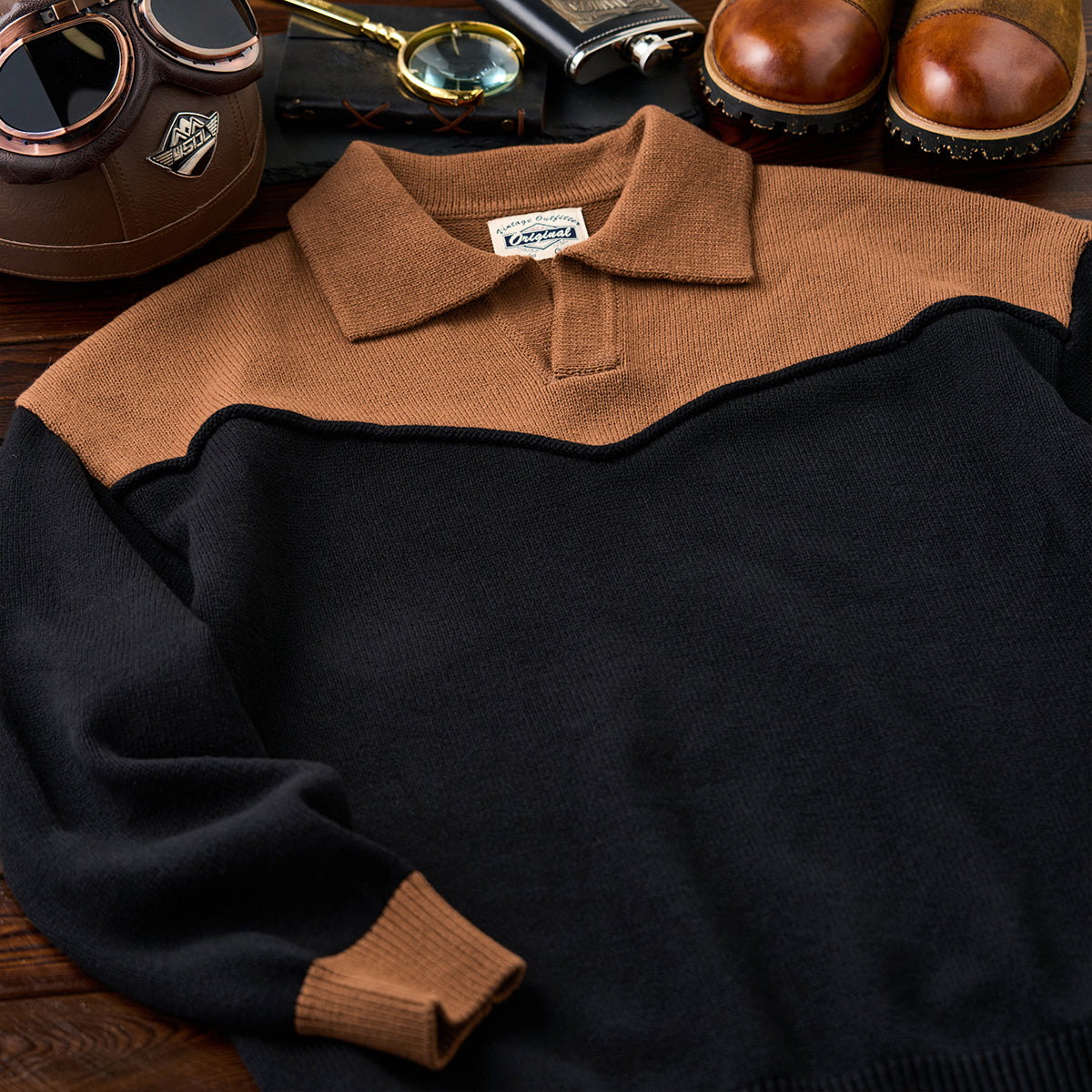 【사전예약】투톤 배색 폴로 칼라 니트 스웨터