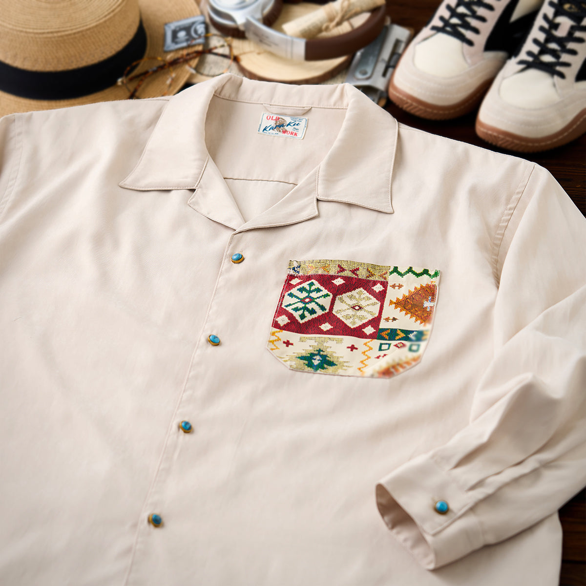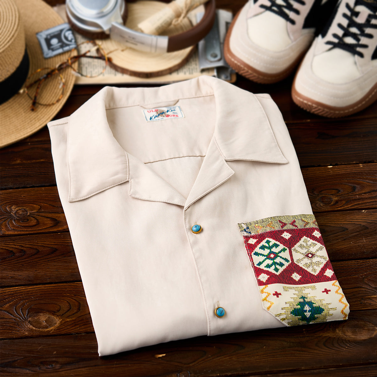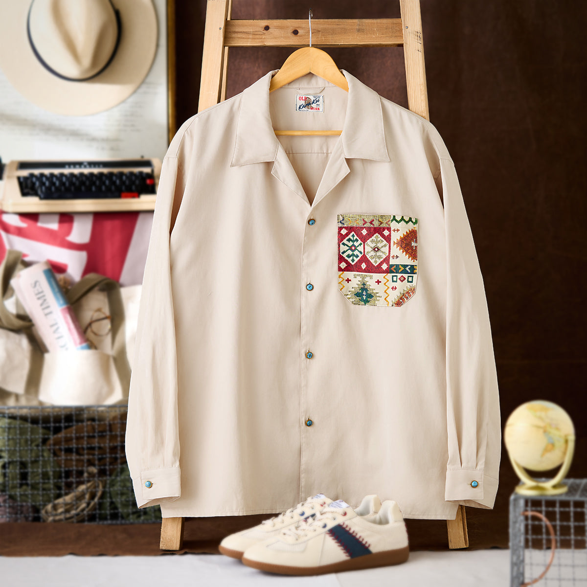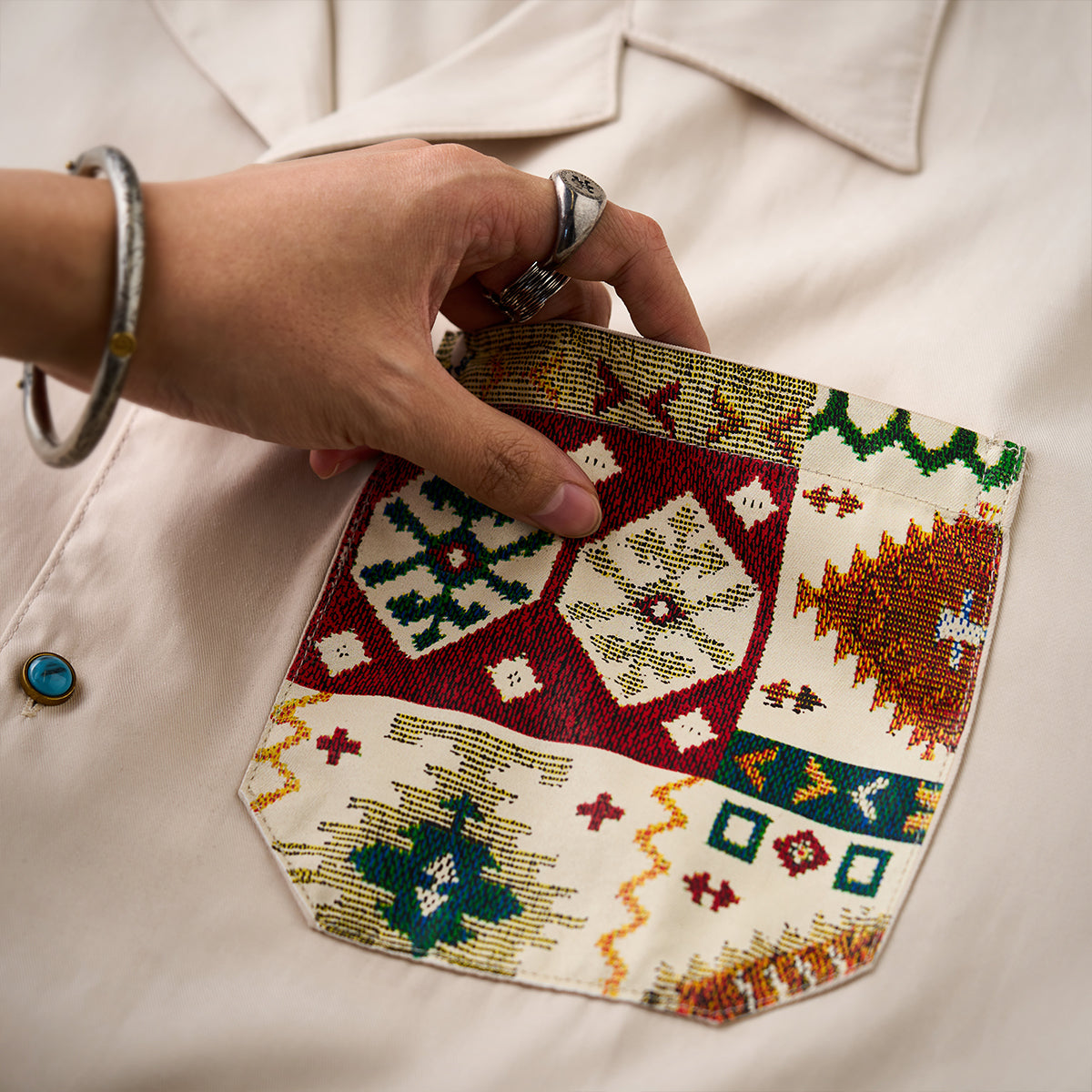 에스닉 자카드 포켓 피치 스킨 셔츠