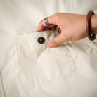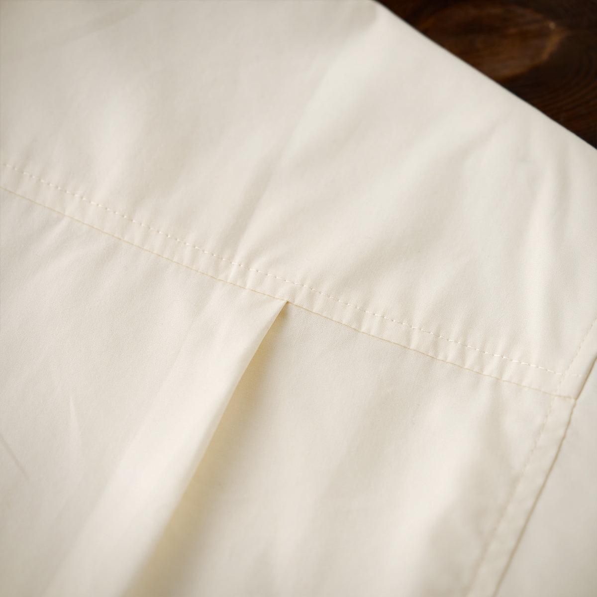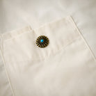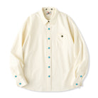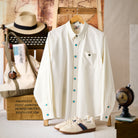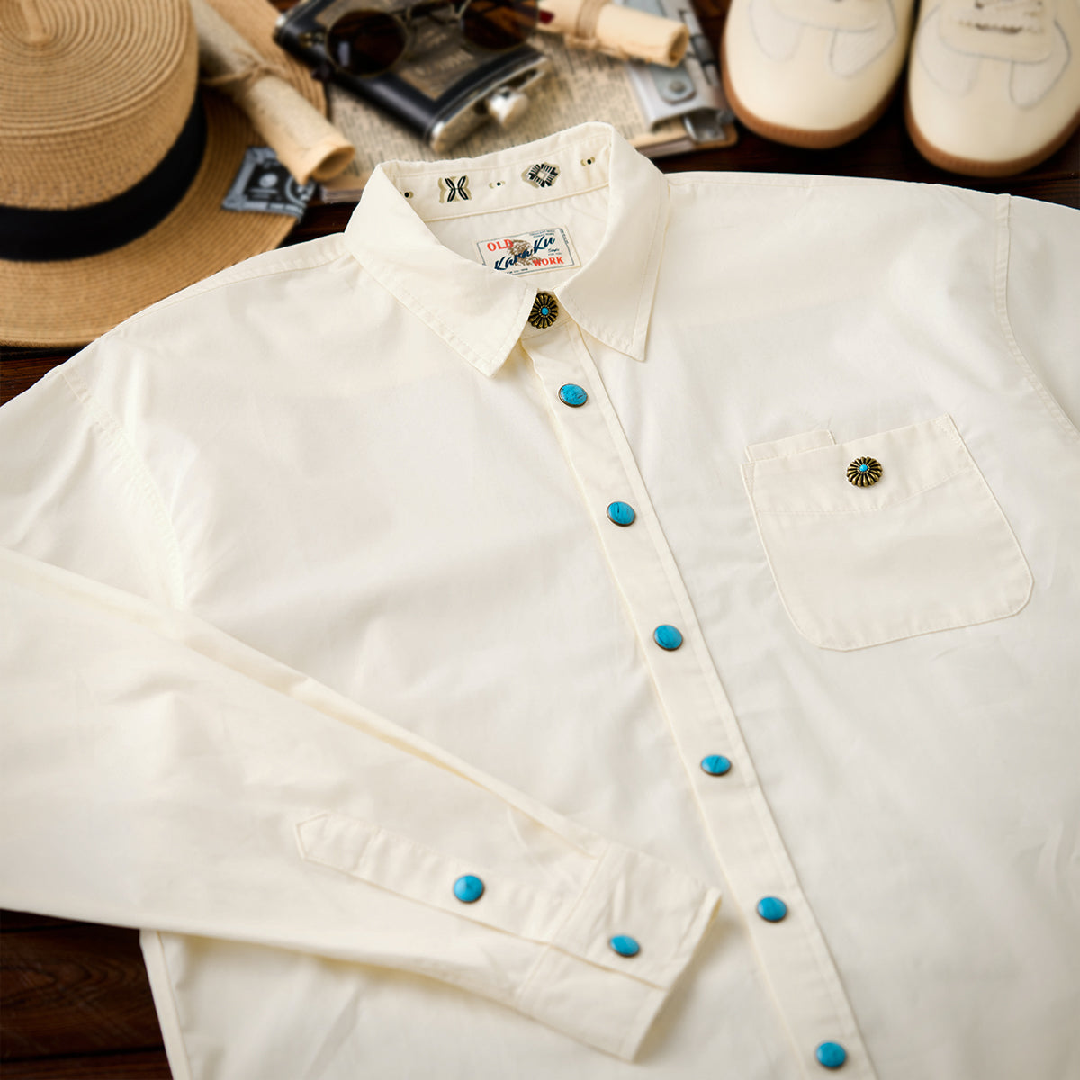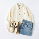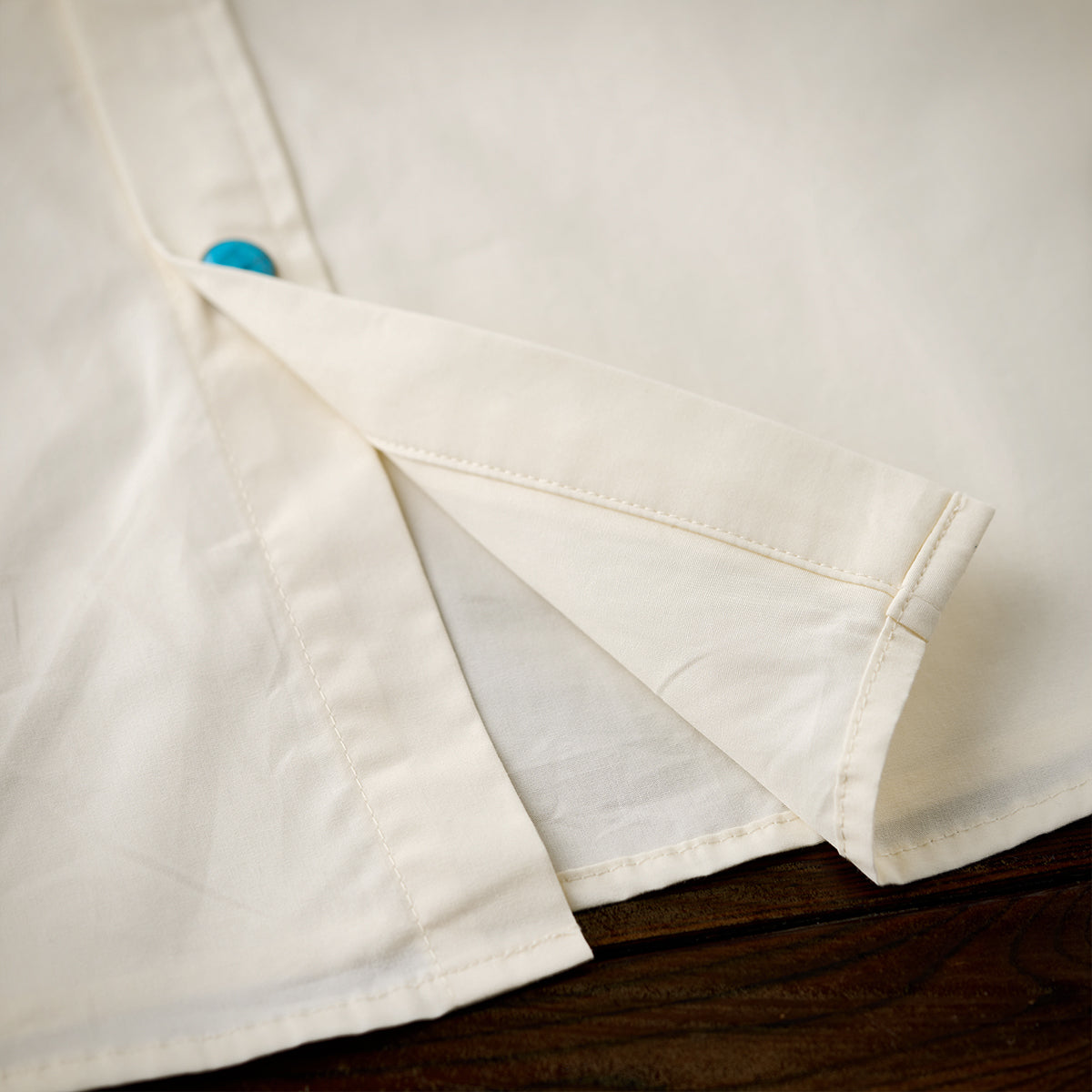 The cross arrow embroidery on the back yoke and the calm colors create a sophisticated atmosphere.
