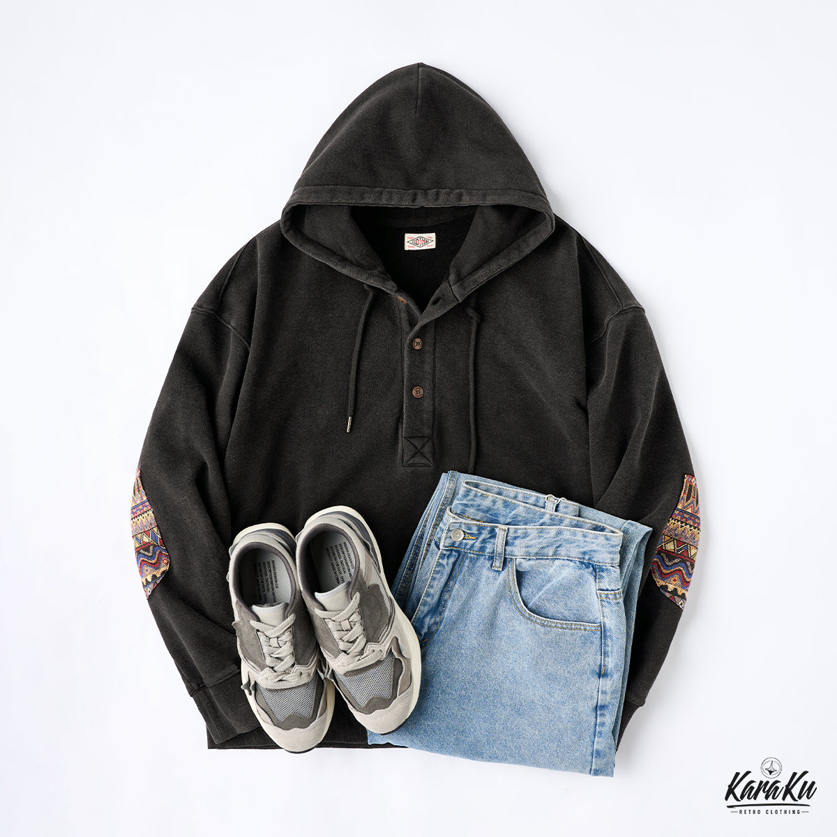 Indian Jacquard Patch Hooded 3 Button Pullover