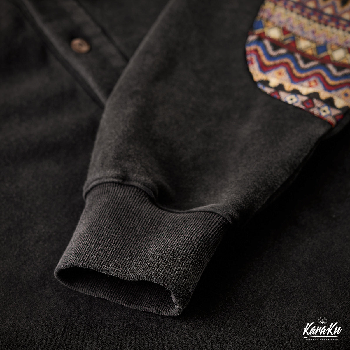 The elbow area of the sleeve features an Indian-style jacquard woven patch that creates a three-dimensional pattern, creating a vintage feel and a handmade feel.