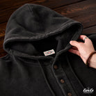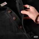 Unlike typical hoodies, it has three buttons on the front to add a shirt-style detail. The buttons are carved out of wood, giving it a natural yet warm look.