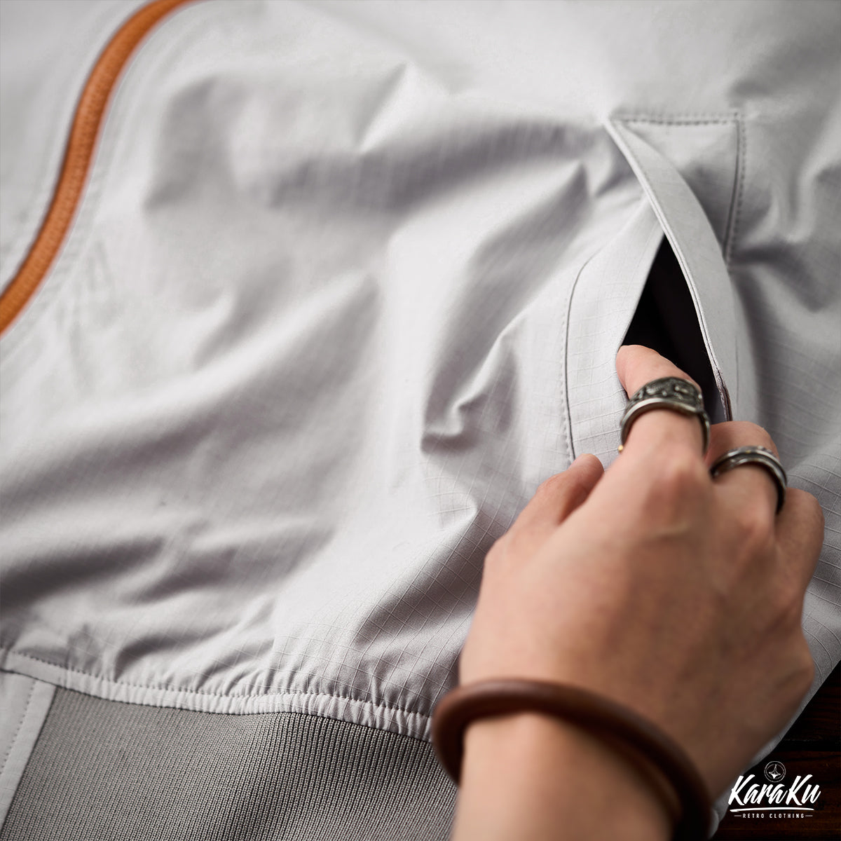 Ribs are placed on the sleeves and hem to block outside wind and enhance warmth.