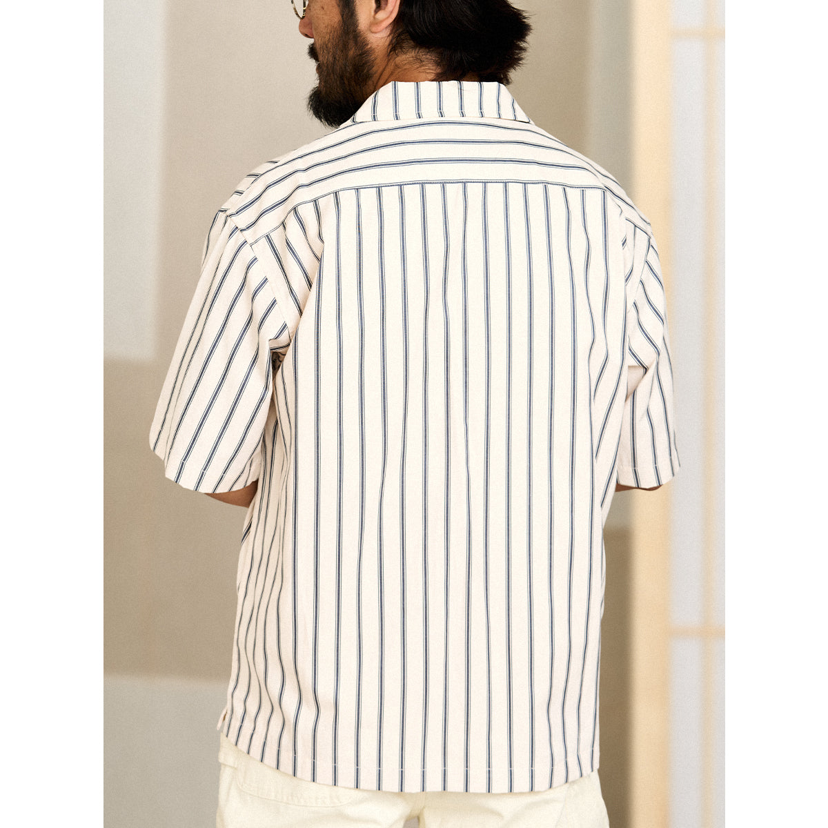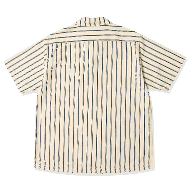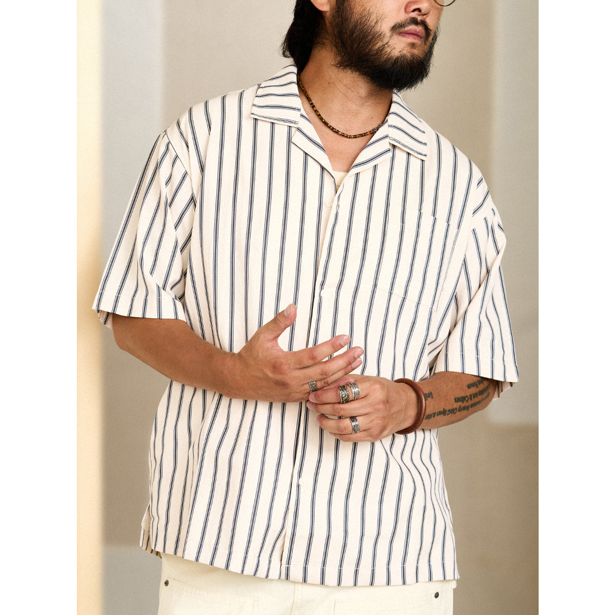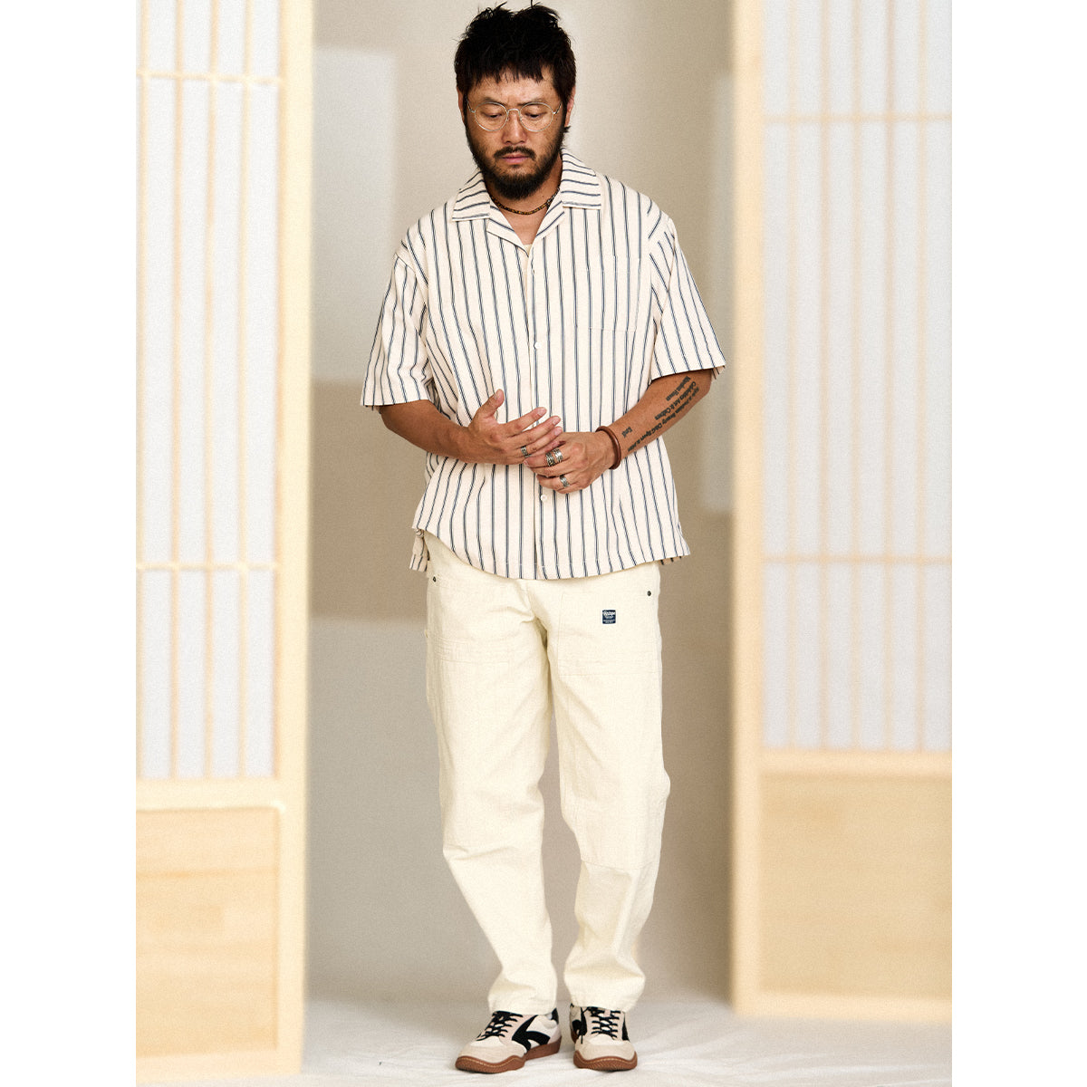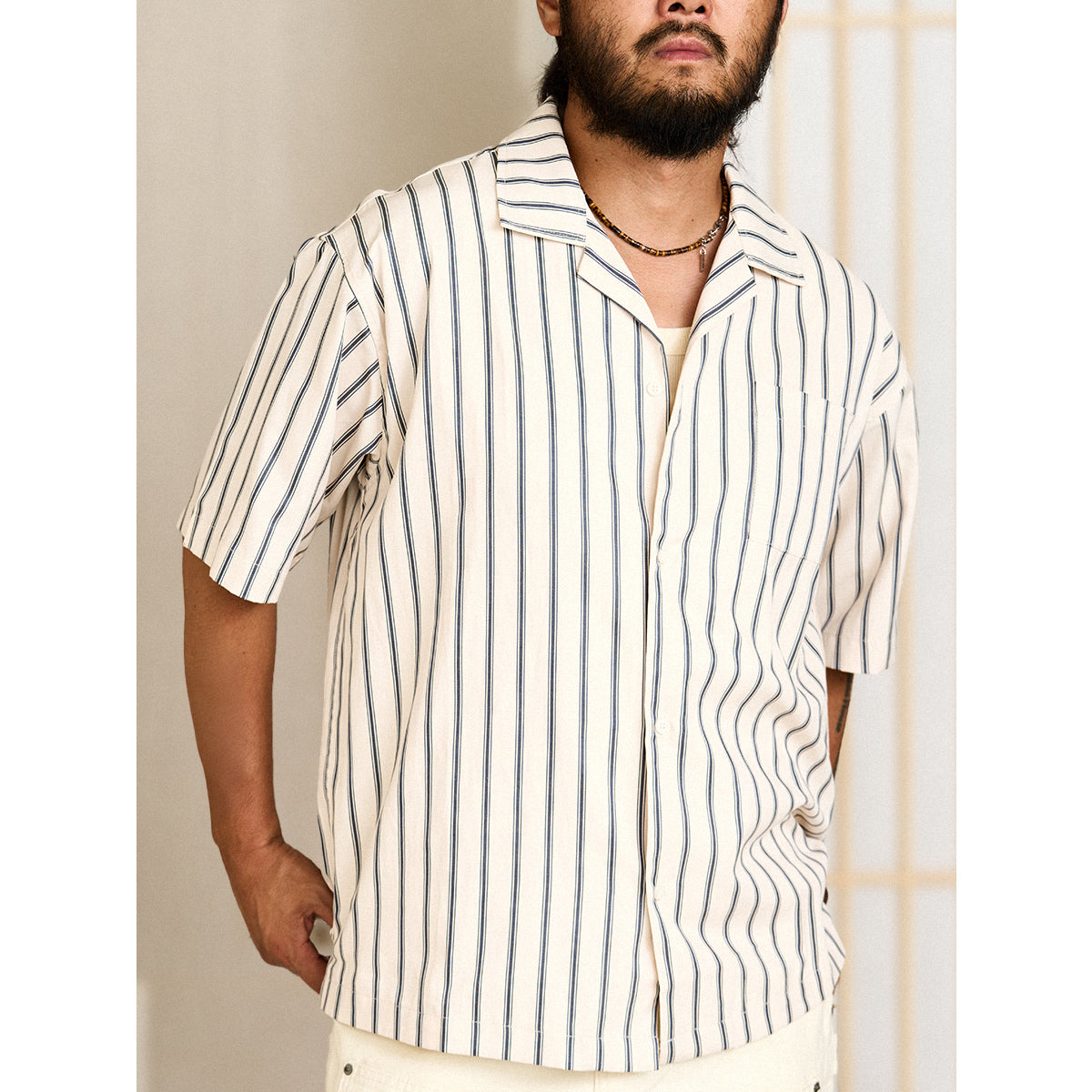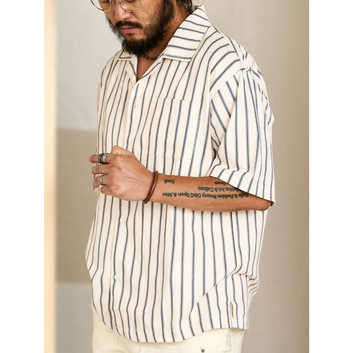 This is a Cuban color shirt that gives off a casual yet mature vibe! It is an item that creates a moderate Italian taste by matching a modern triple stripe pattern with a sophisticated beige color as a base. It is a calm color that is good to introduce to the coordination, but in terms of design, the nape of the neck is an open color specification, so it can be worn comfortably without tightening around the neck. It is completed with a style that gives a sophisticated feel with a loose fit with dropped shoulders.