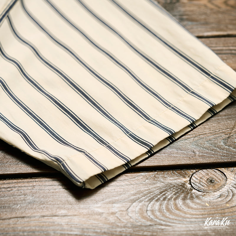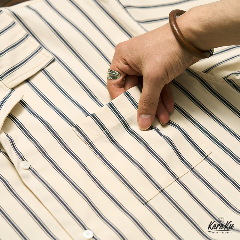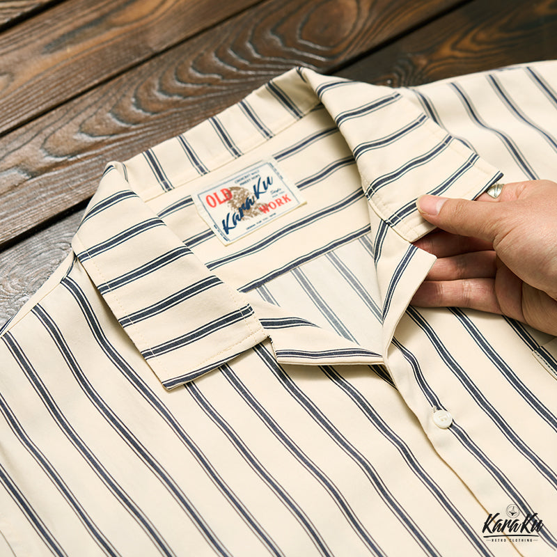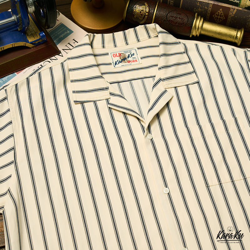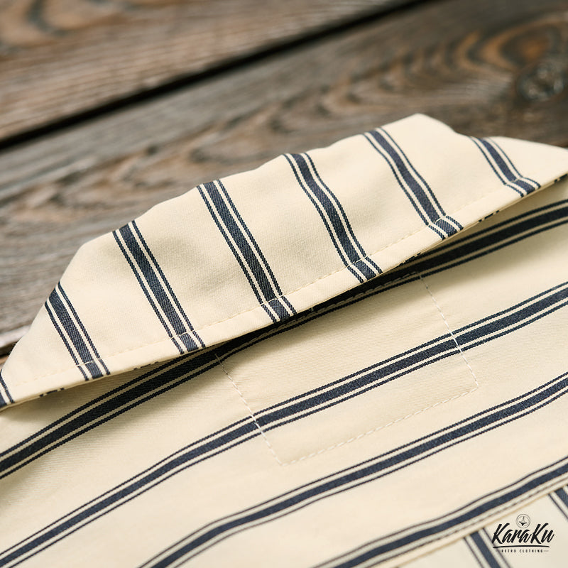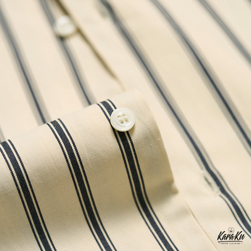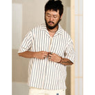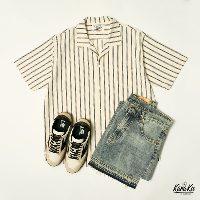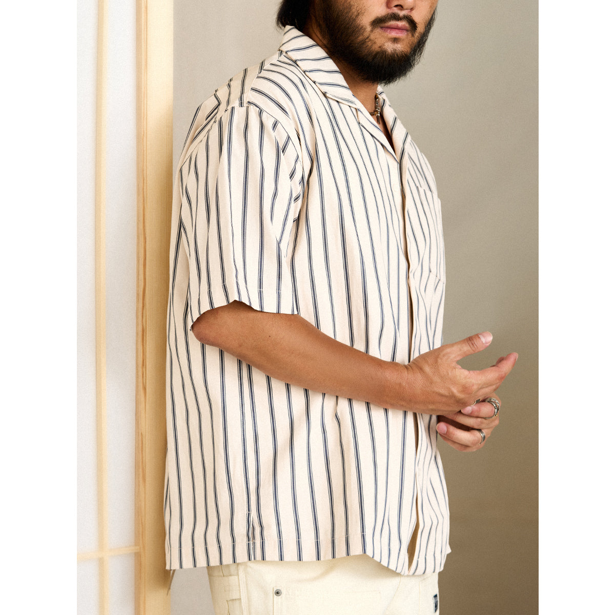 This is a Cuban color shirt that gives off a casual yet mature vibe! It is an item that creates a moderate Italian taste by matching a modern triple stripe pattern with a sophisticated beige color as a base. It is a calm color that is good to introduce to the coordination, but in terms of design, the nape of the neck is an open color specification, so it can be worn comfortably without tightening around the neck. It is completed with a style that gives a sophisticated feel with a loose fit with dropped shoulders.