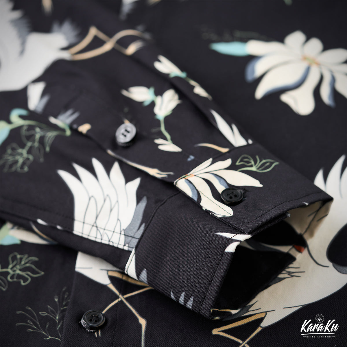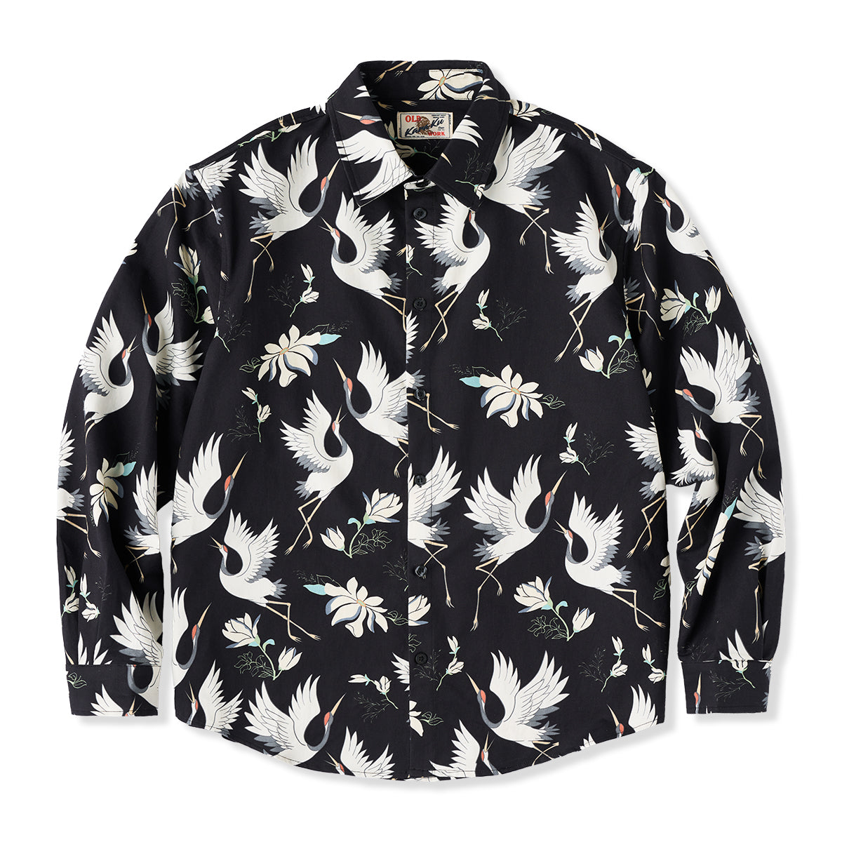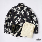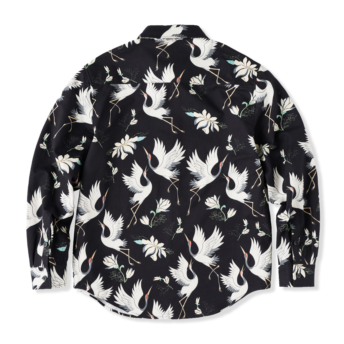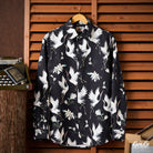 "Flying Cranes and Flowers" Japanese Pattern Cotton Long Sleeve Shirt
