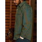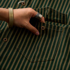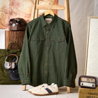 A heavyweight overshirt with a vintage feel, featuring classic stripes and sturdy 100% cotton construction.