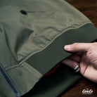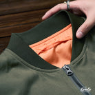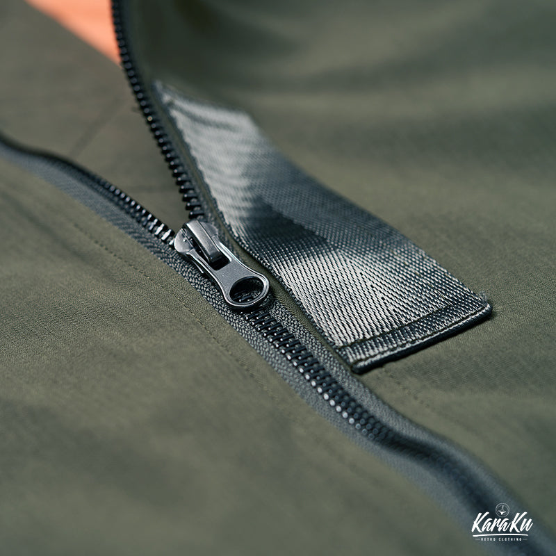The collar, sleeves, and hem are ribbed to block out wind from the outside and keep the inside warm, and the lining is made of rescue orange, a design that follows the style of the time.