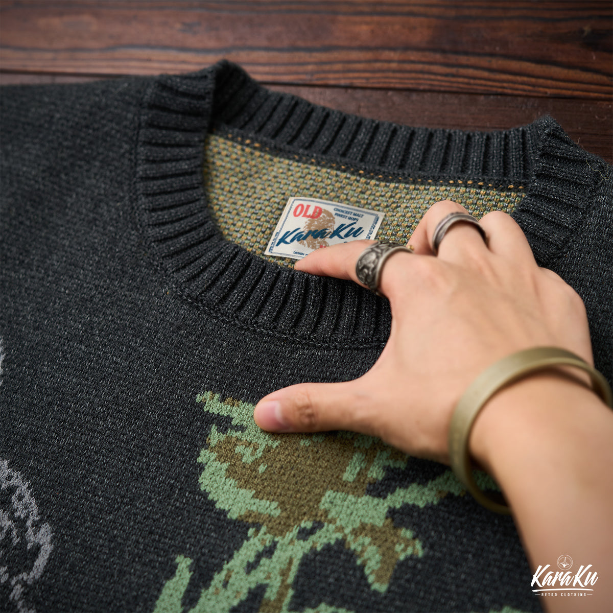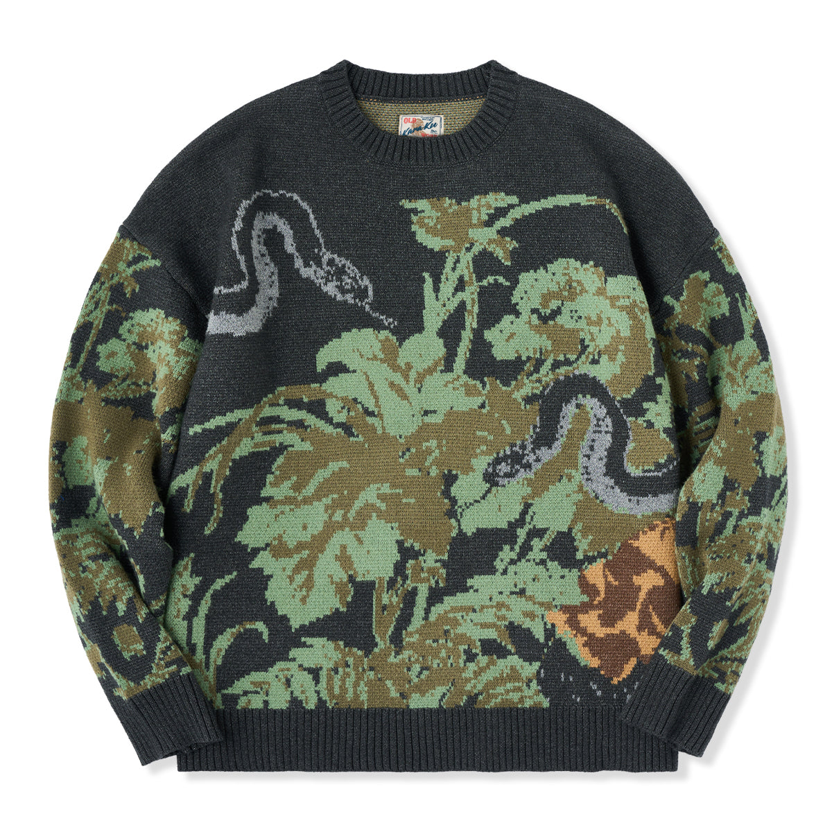 "Dangerous Jungle Snake & Skull" Jacquard Knit Sweater