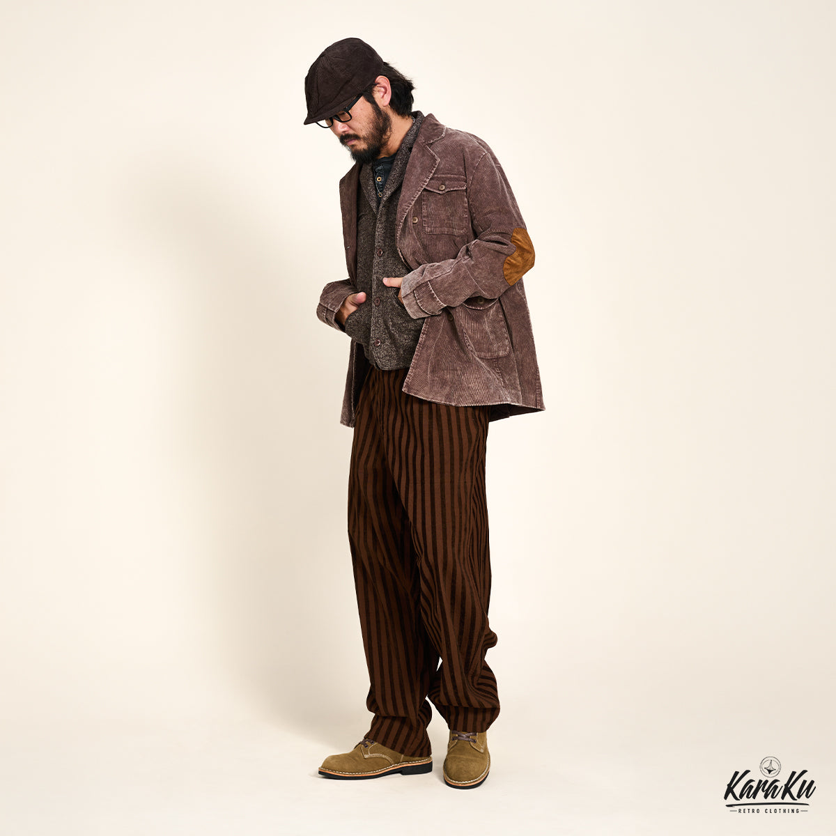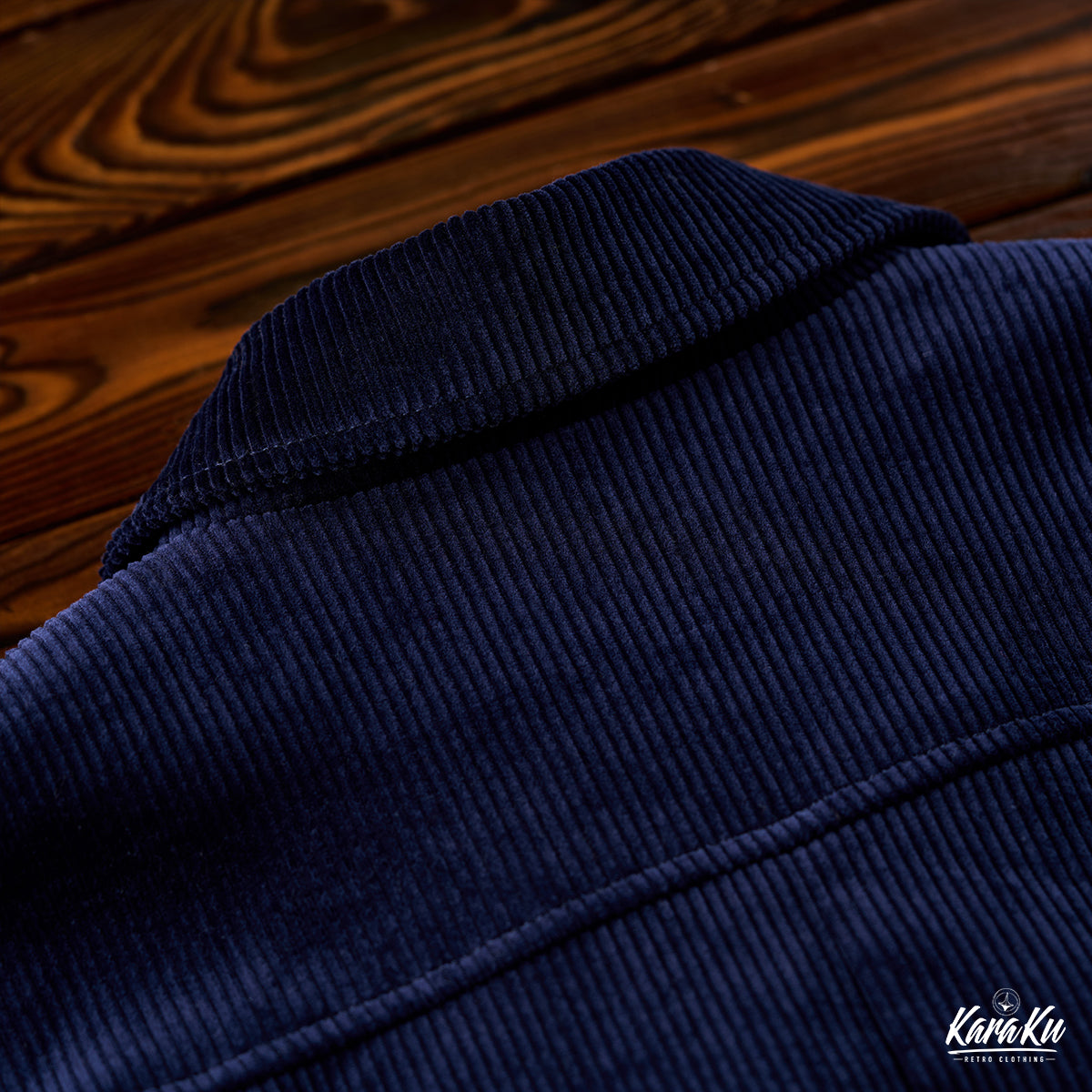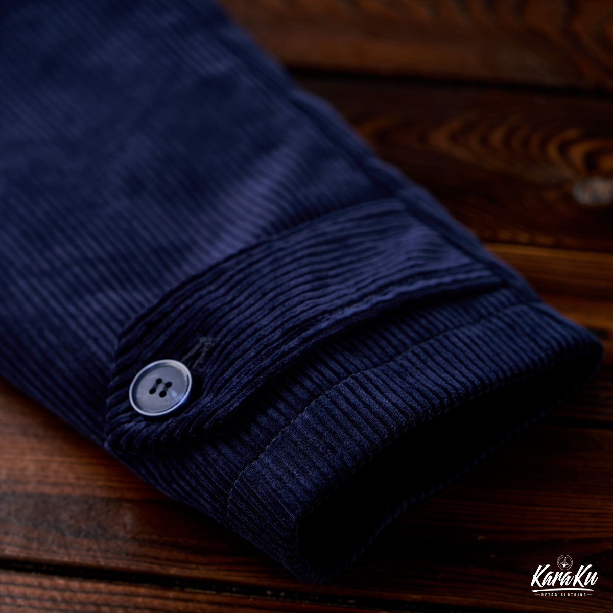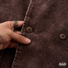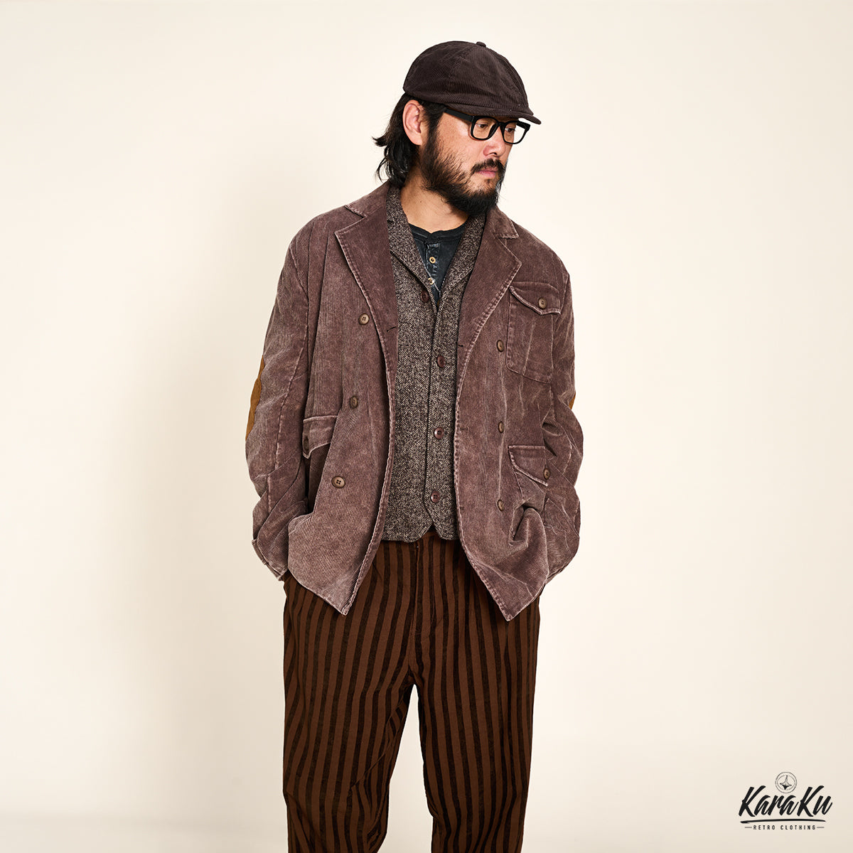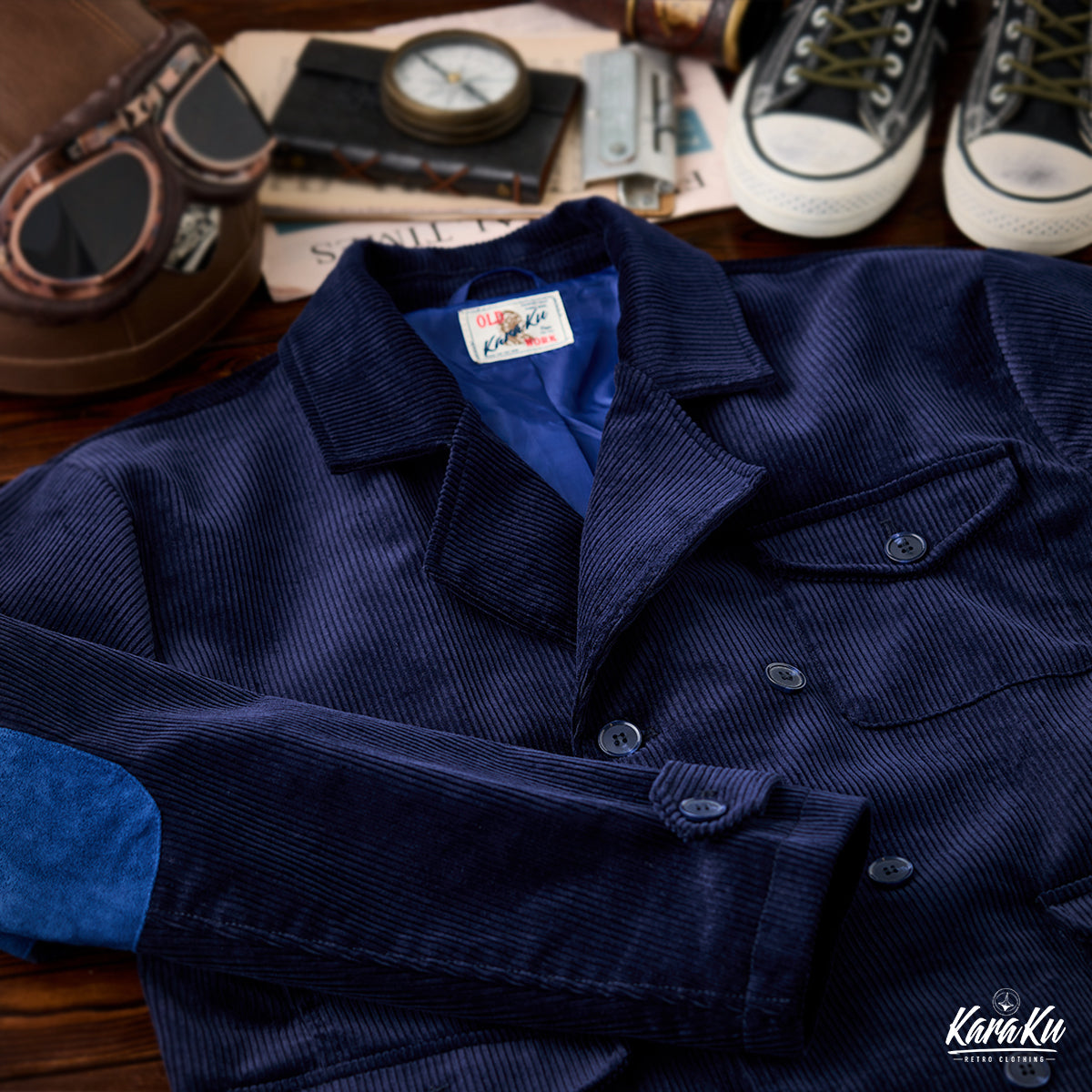 This tailored jacket is made of thick corduroy material, which is soft and warm, and has a subtle sheen that gives it a luxurious feel. It is a versatile piece that can be used in fall and winter.