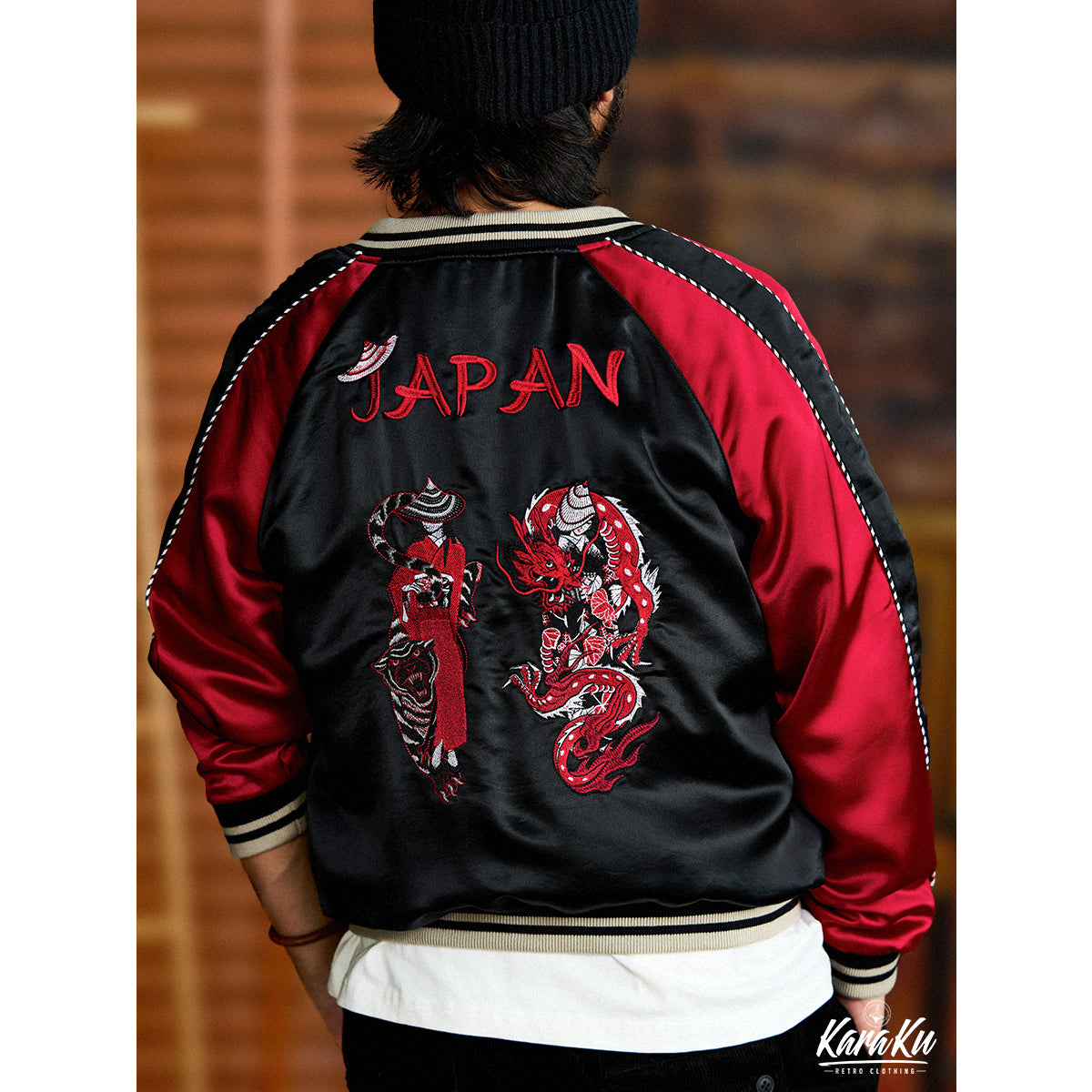 The Japanese fashion item "Sukajan", which is said to have originated in Dobu Itadori in Yokosuka, Kanagawa Prefecture, began shortly after the war when American soldiers stationed in Japan began embroidering eagles, tigers, dragons, and other symbols of the units and bases they were stationed at onto their jackets to commemorate the occasion.