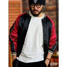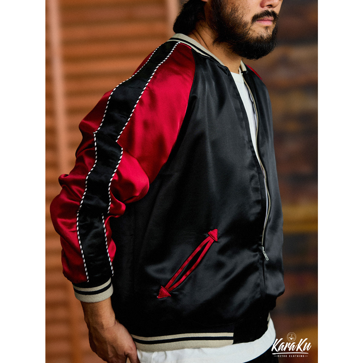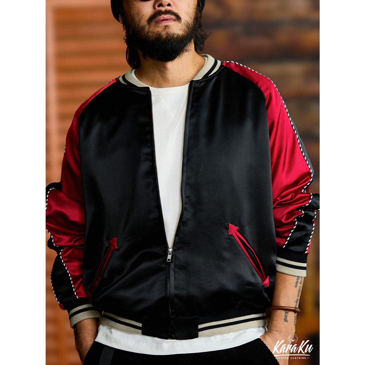 A unique Souvenir jacket that expresses the balance of yin and yang with ukiyo-e style embroidery. Made of smooth mixed materials, it combines comfort and style, and can be coordinated in various ways.