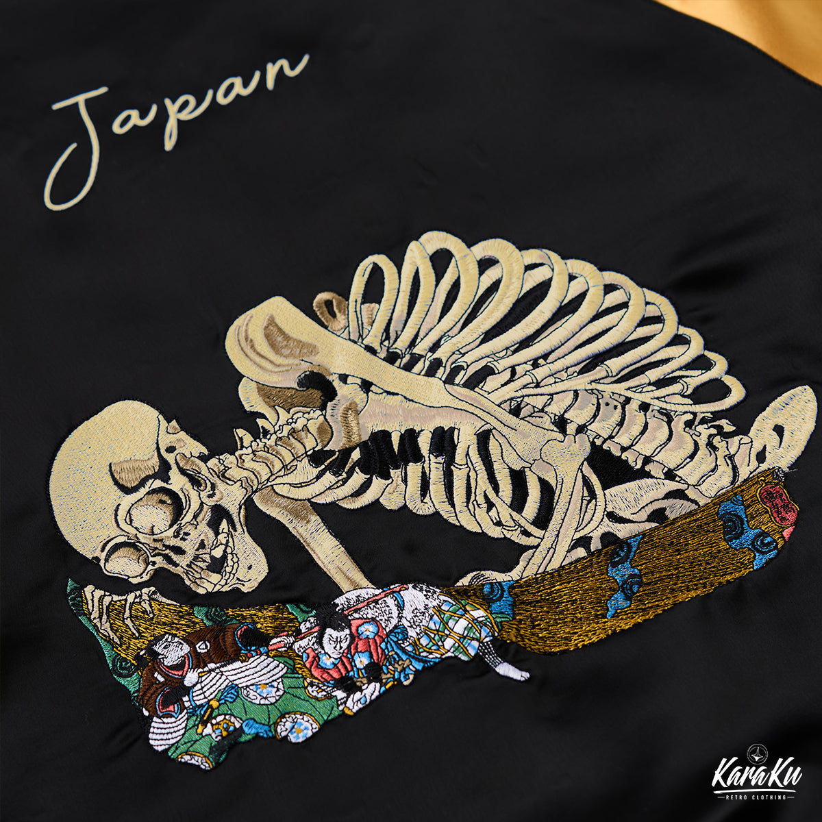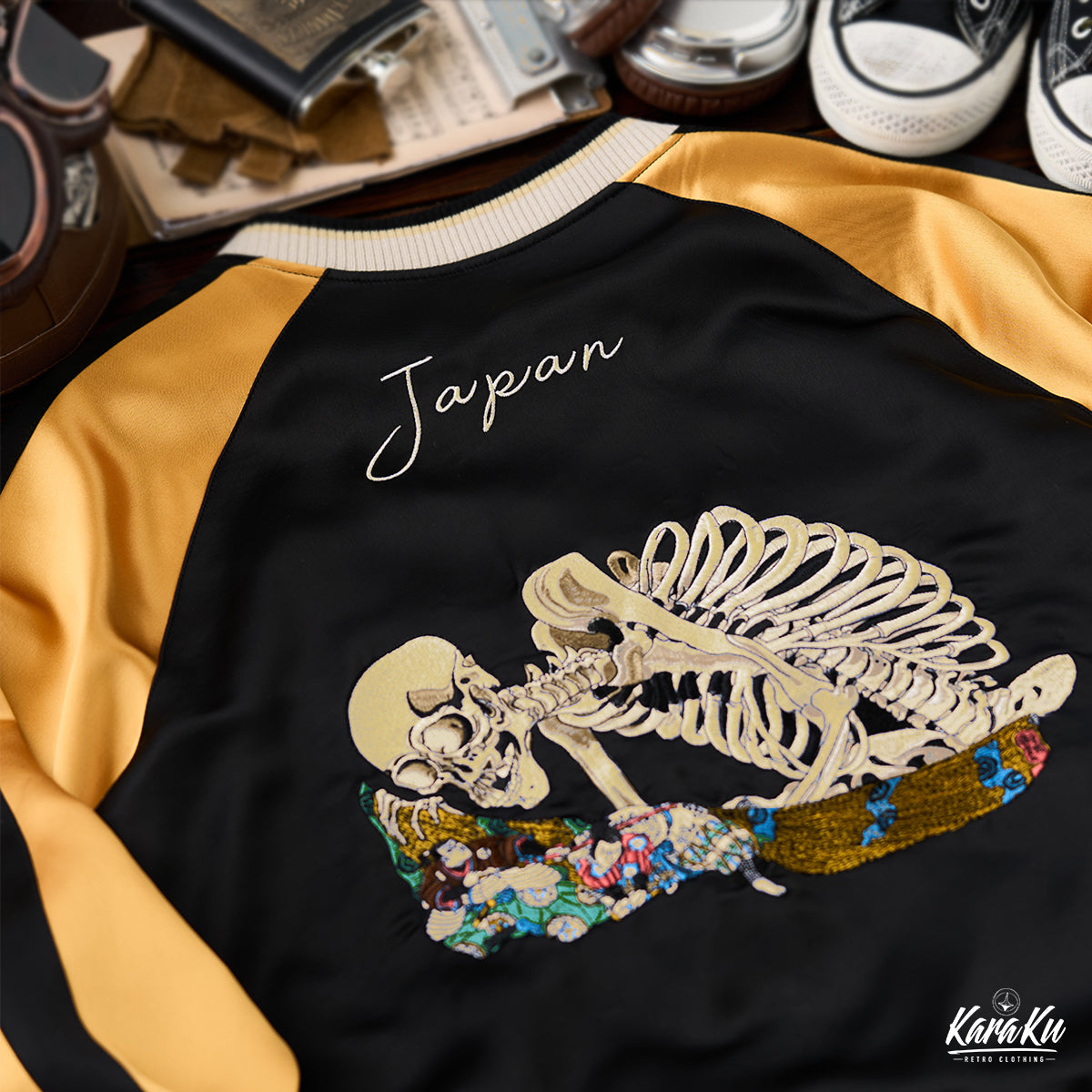 이번 시즌에는 쿠니요시가 그린 ‘젠치 야스카타 다다요시전’을 모티브로, 박진감 넘치는 해골 도안을 스카잔 스타일로 재현했습니다.