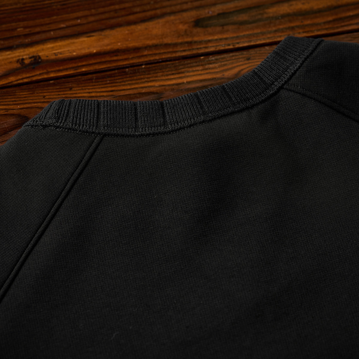 넥 V자 거셋과 오더메이드 립 디테일로 빈티지 감성과 고급스러움을 표현한 스웨트셔츠. 래글런 슬리브로 편안한 착용감과 여유로운 실루엣을 제공합니다.
