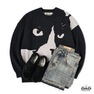This trendy item features a mysterious cat design made with high-quality wool material and jacquard technique, and has excellent texture and durability, making it a great match with a variety of bottoms.