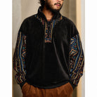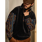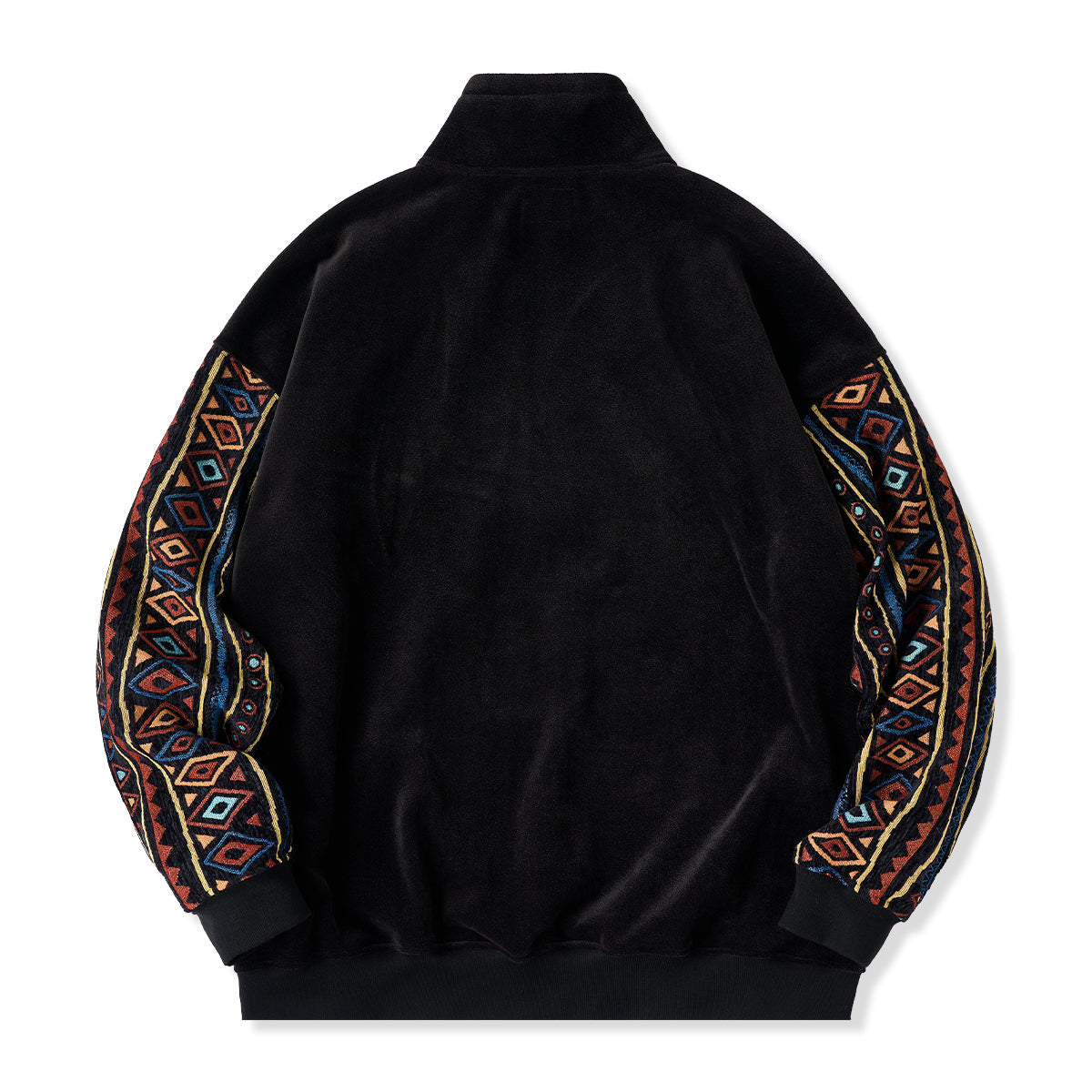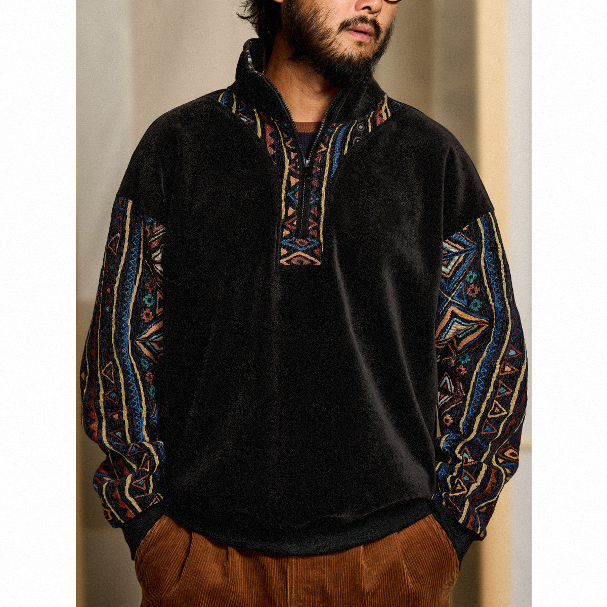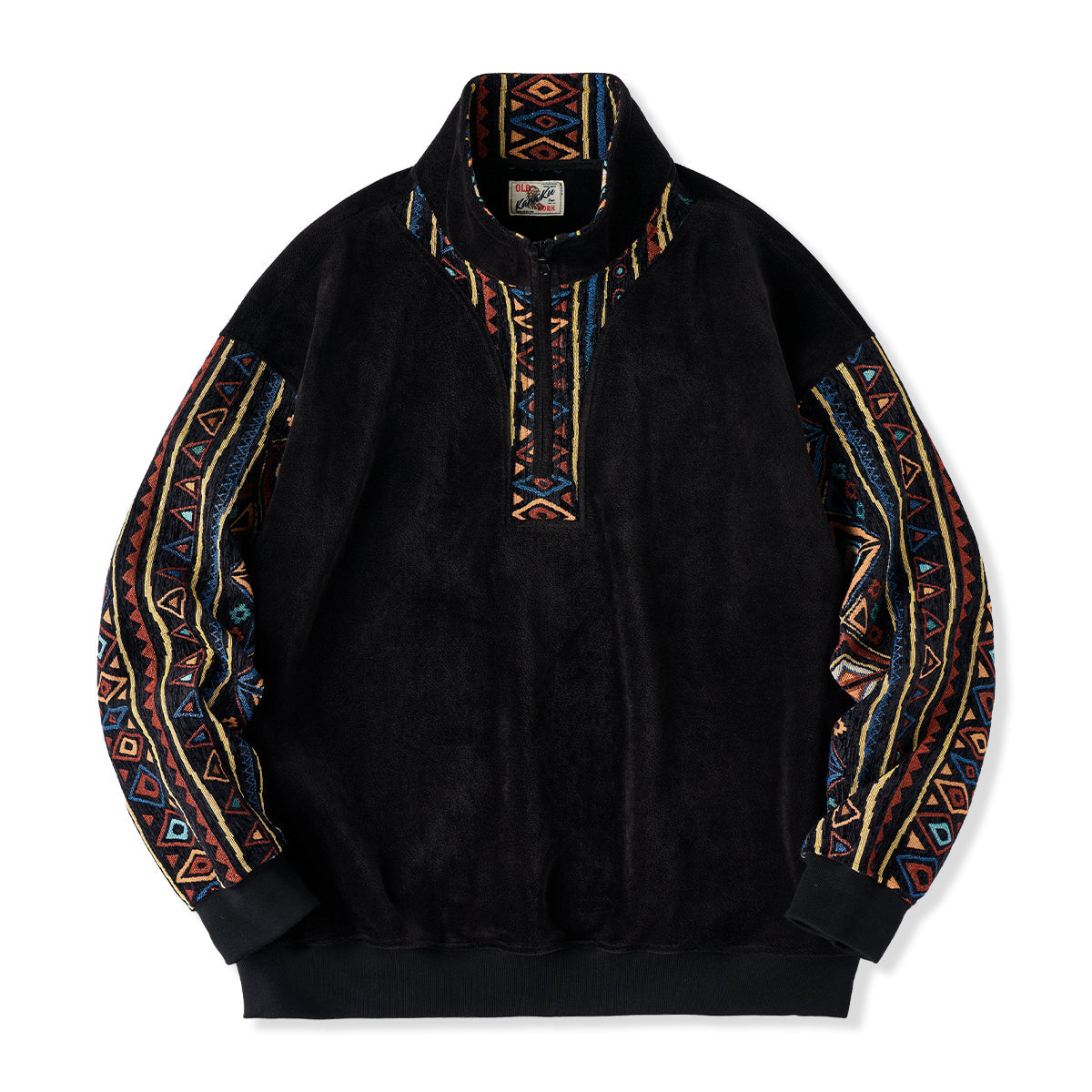 에스닉 자카드 직조 콤비 하프 지퍼 폴라 플리스 스웨트