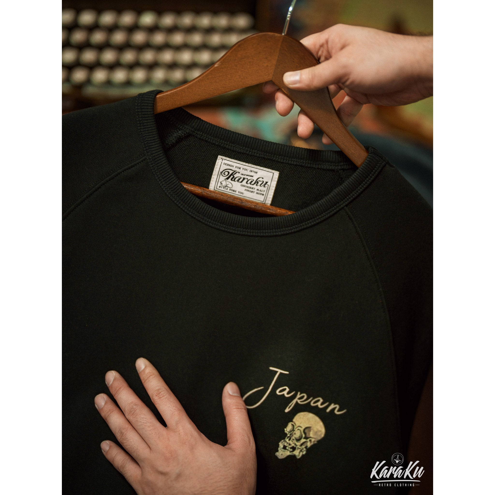 Introducing a raglan sleeve sweatshirt with a high-quality print design! This product features a vibrant skull pattern inspired by Kuniyoshi's Senji Anbo Chuuiden (The Story of Loyalty to Good Knowledge and Peace) on the sweatshirt.
