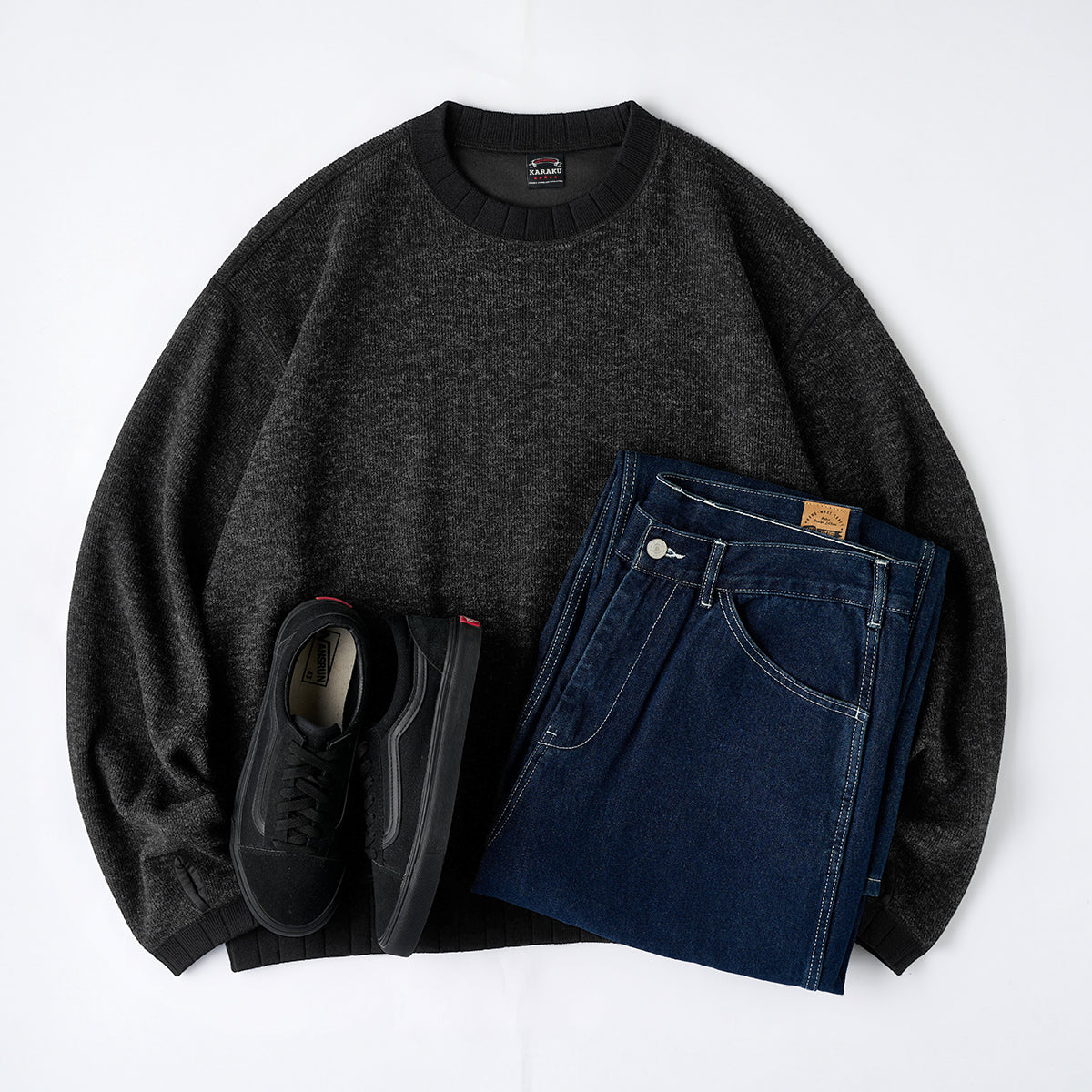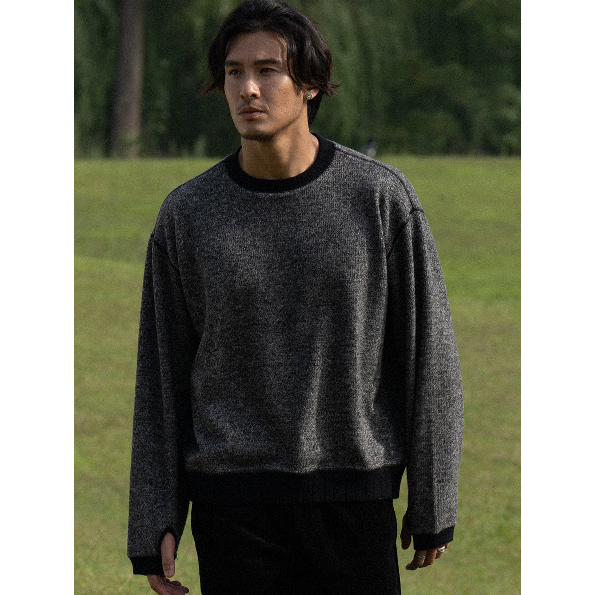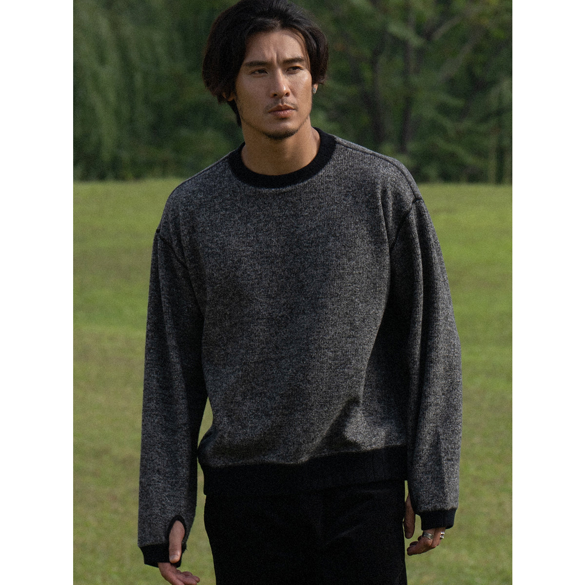 소매 엄지홀 미세기모 텍스처 니트 스웨트셔츠