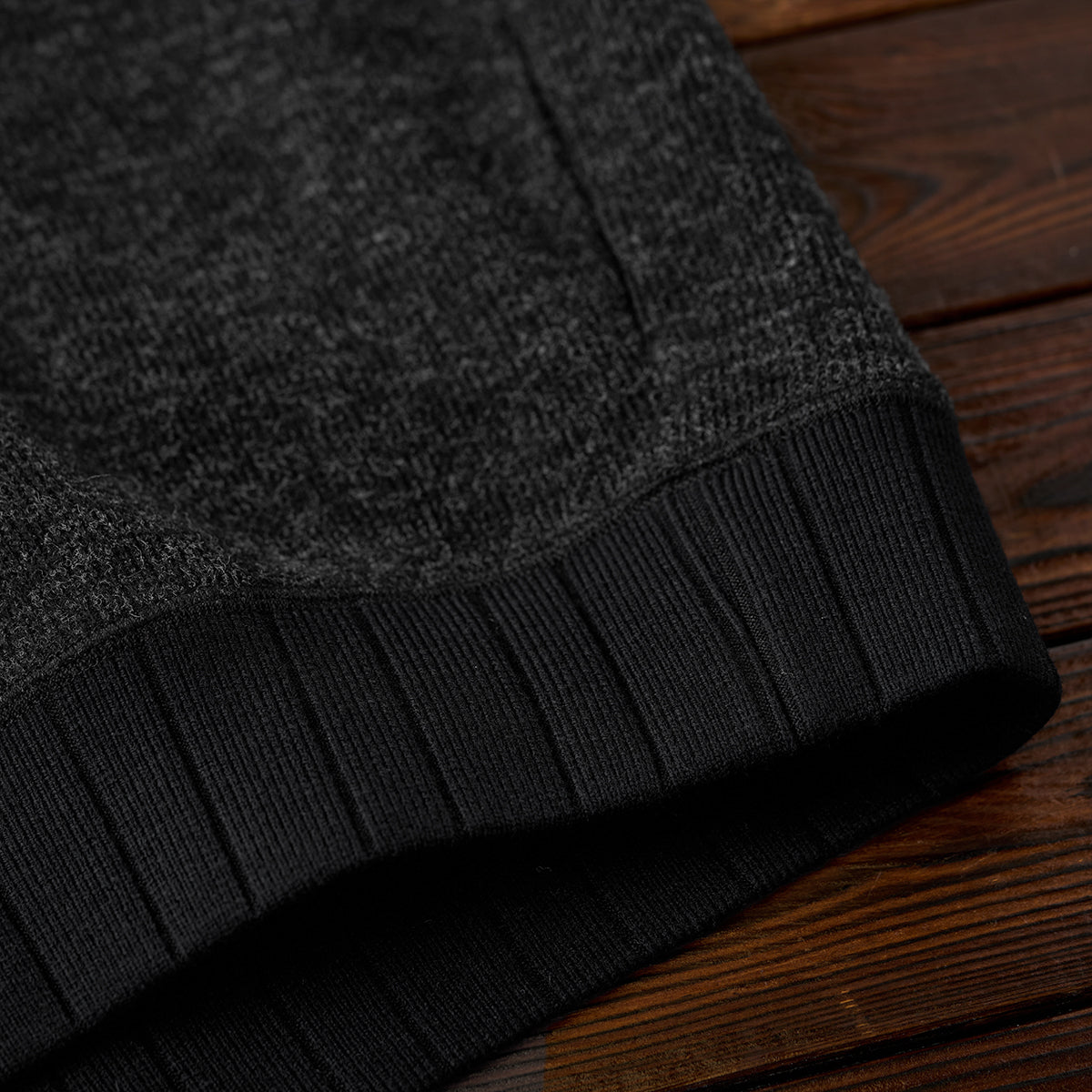 리브 크루넥과 소매 엄지홀로 스포티하고 활동적인 니트 스웨트, 블랙·그레이 2가지 색상으로 다양한 하의와 매치 가능.