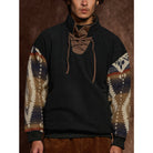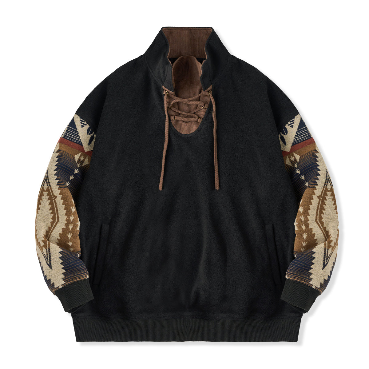 Navajo pattern combination drawstring polar fleece pullover