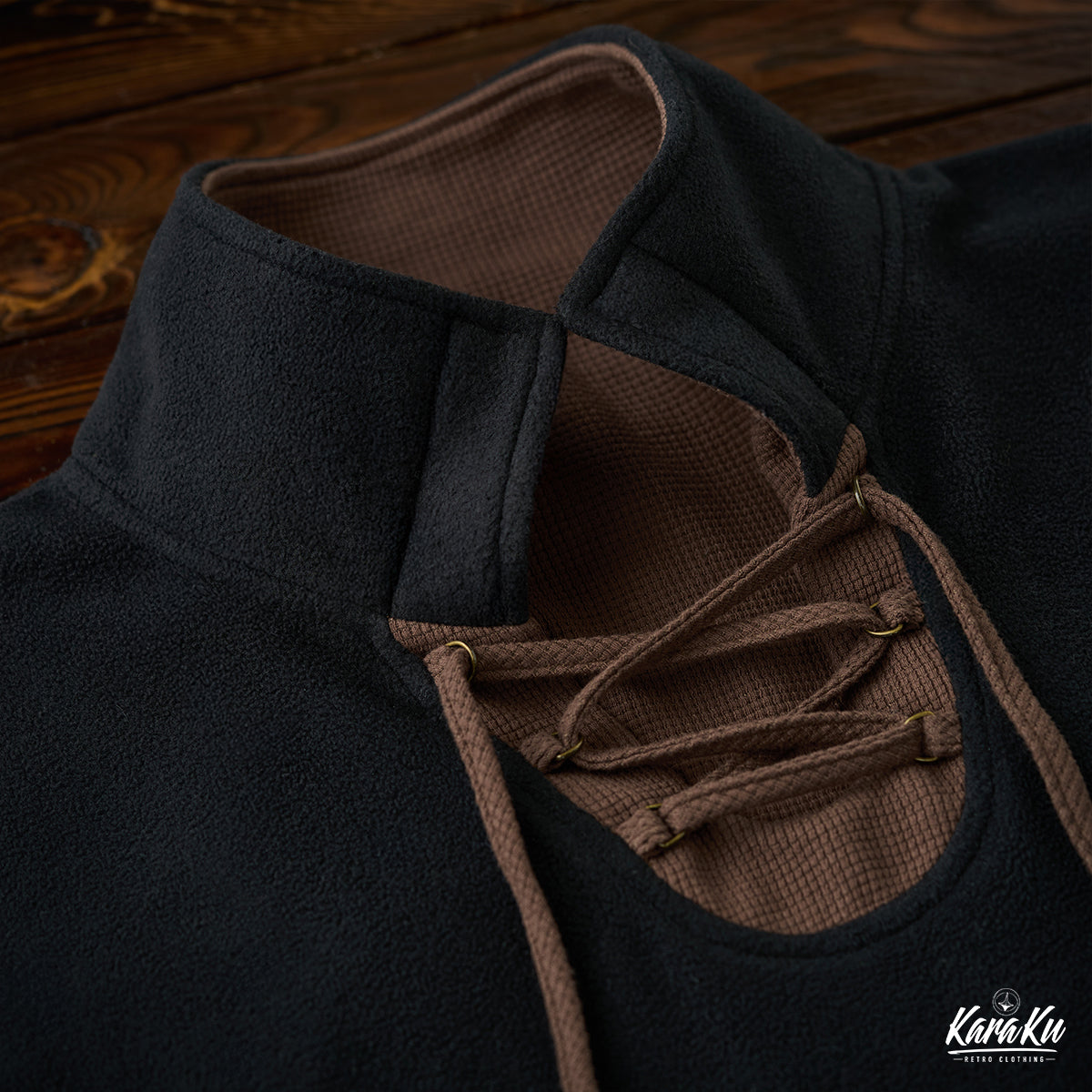 The neckline features a waffle drawstring design that adds a casual feel while effectively blocking out cold air.