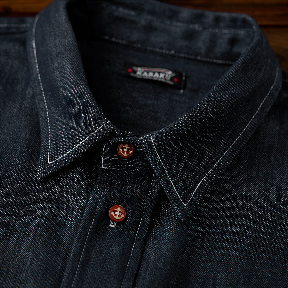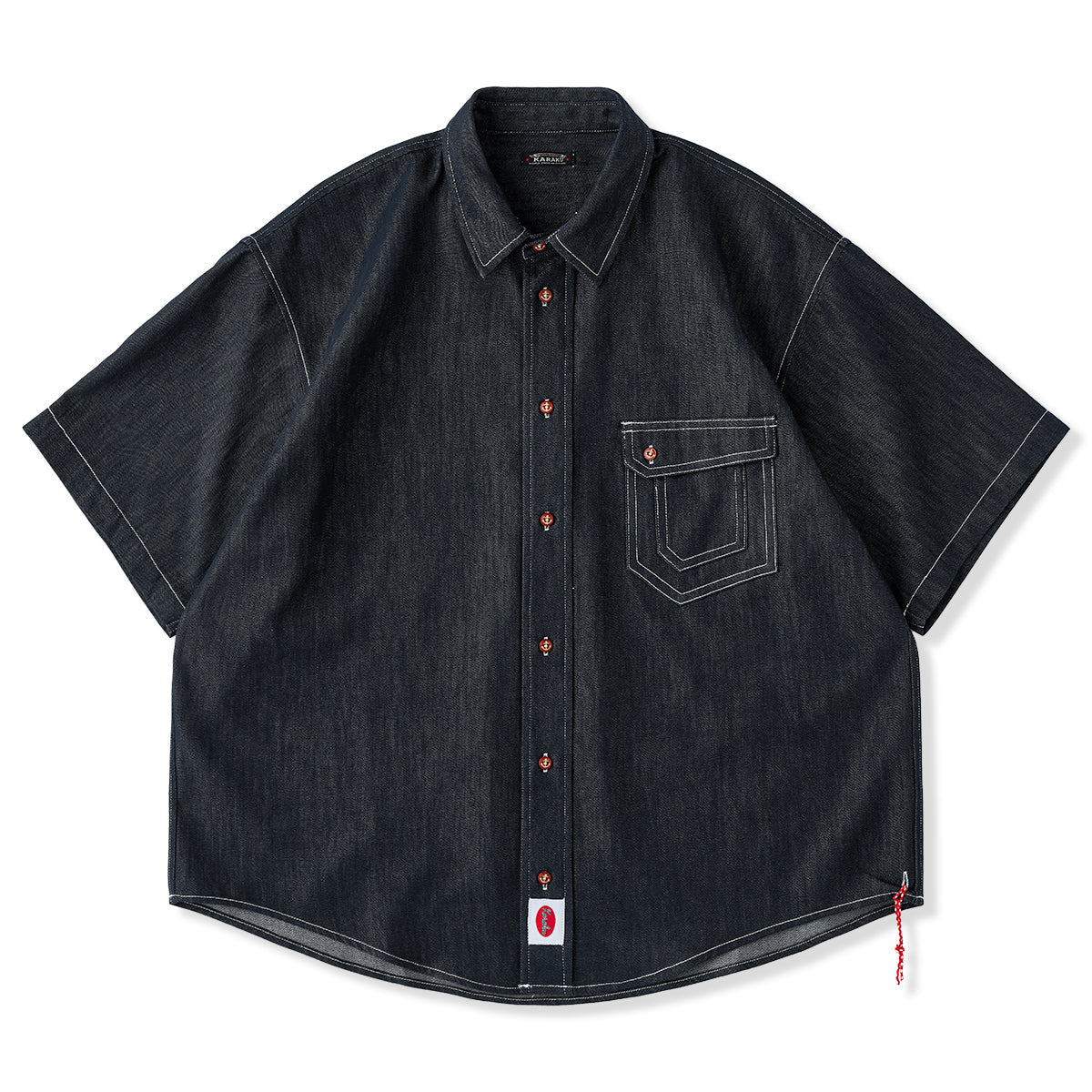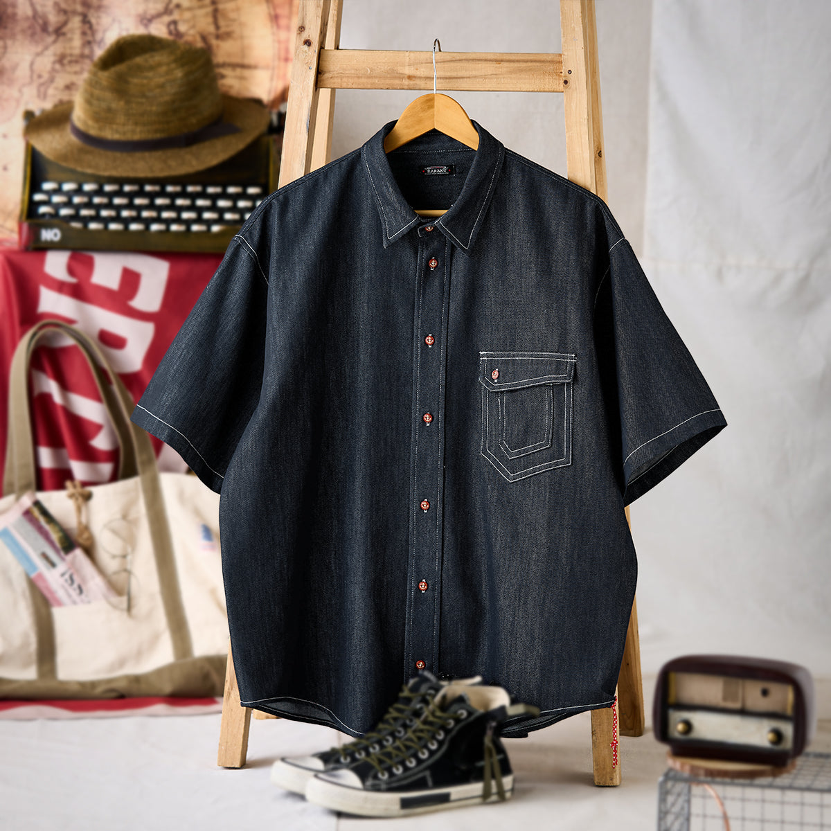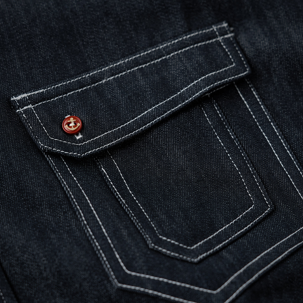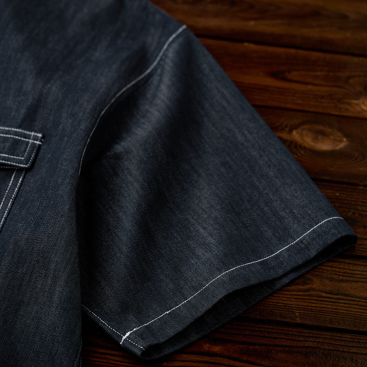 빨간 끈 화이트 스티치 해군 CPO 데님 반팔 셔츠