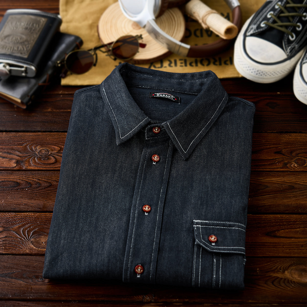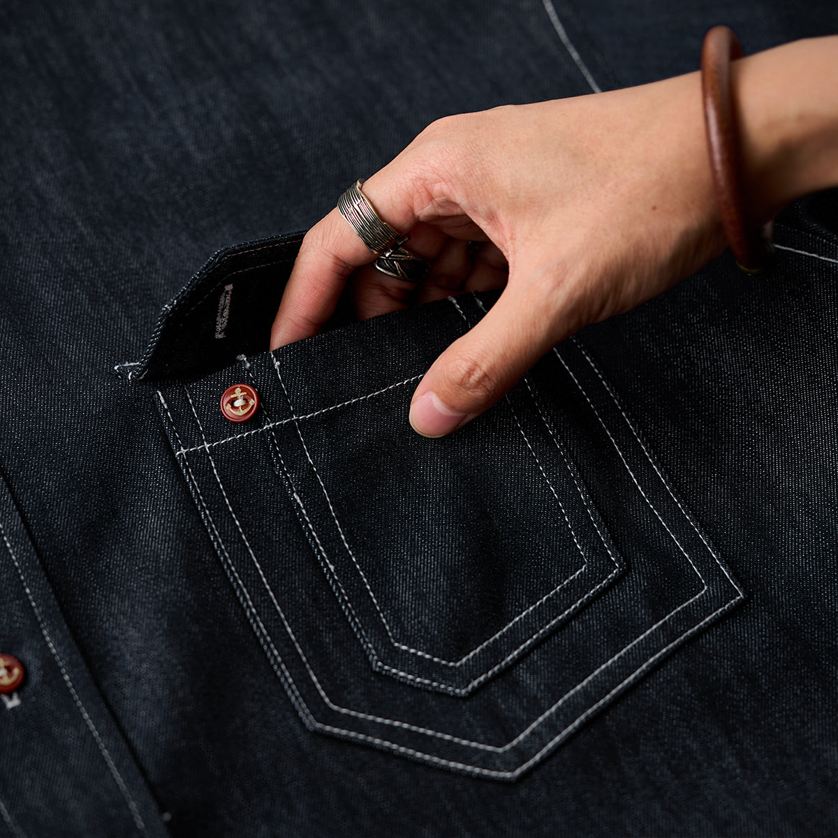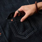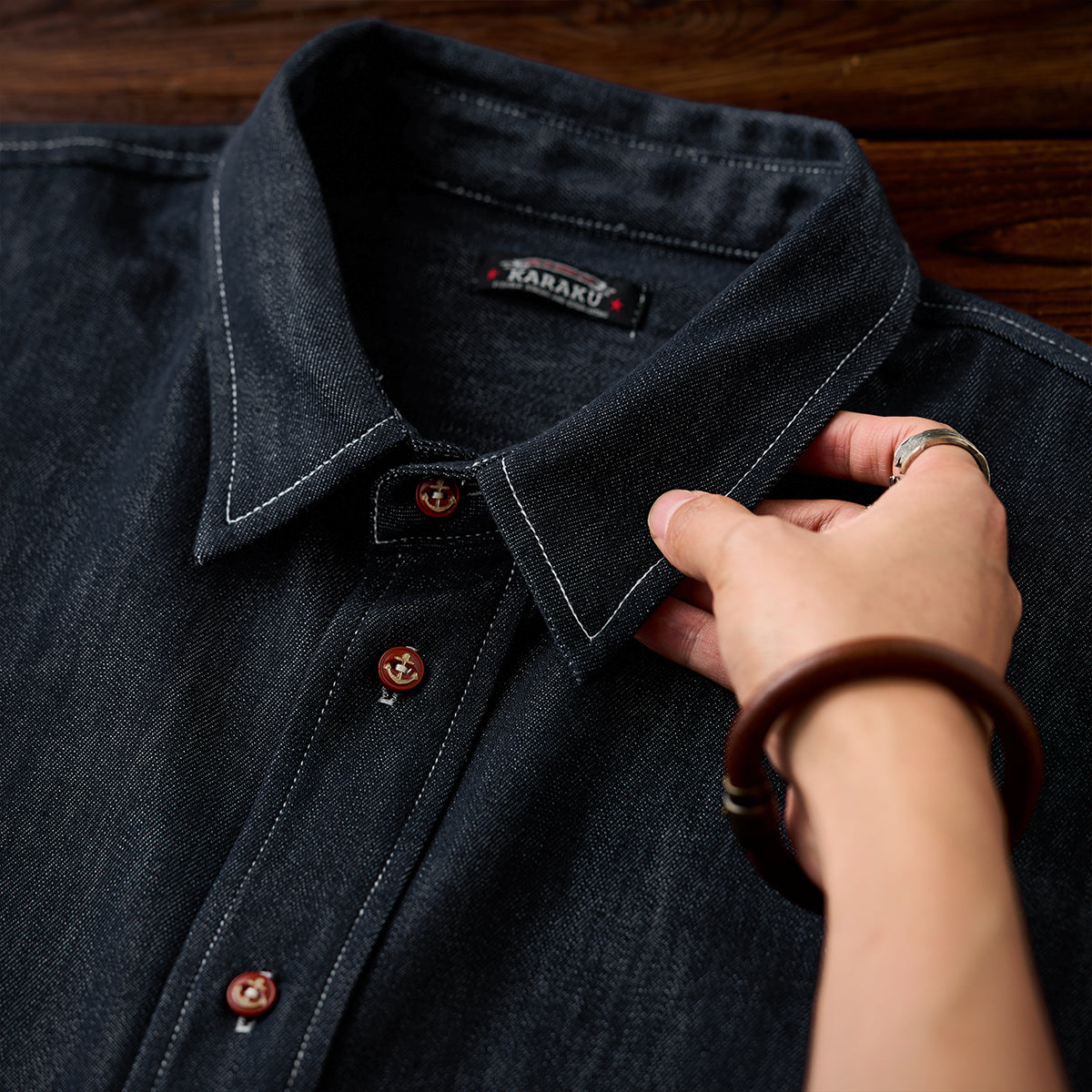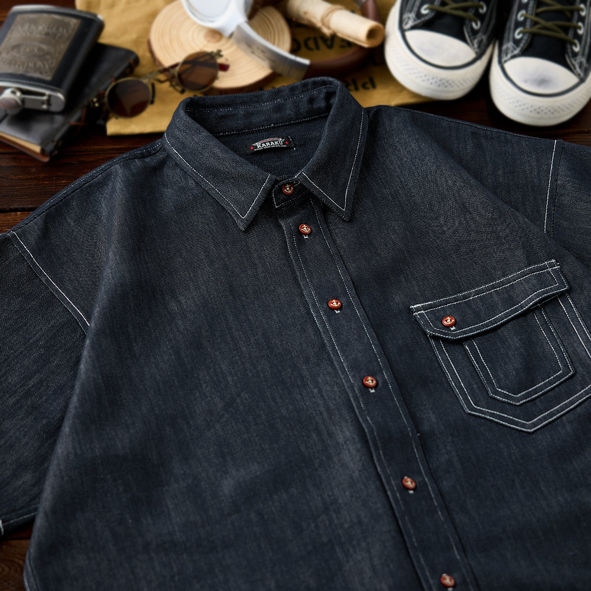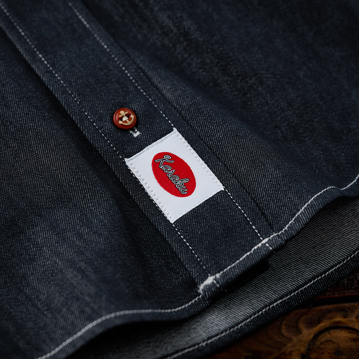 빨간 끈 화이트 스티치 해군 CPO 데님 반팔 셔츠