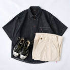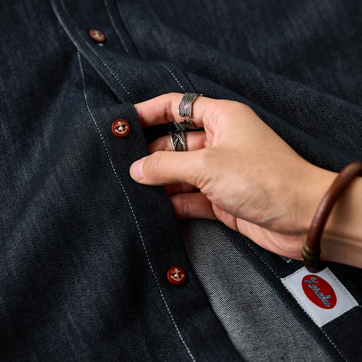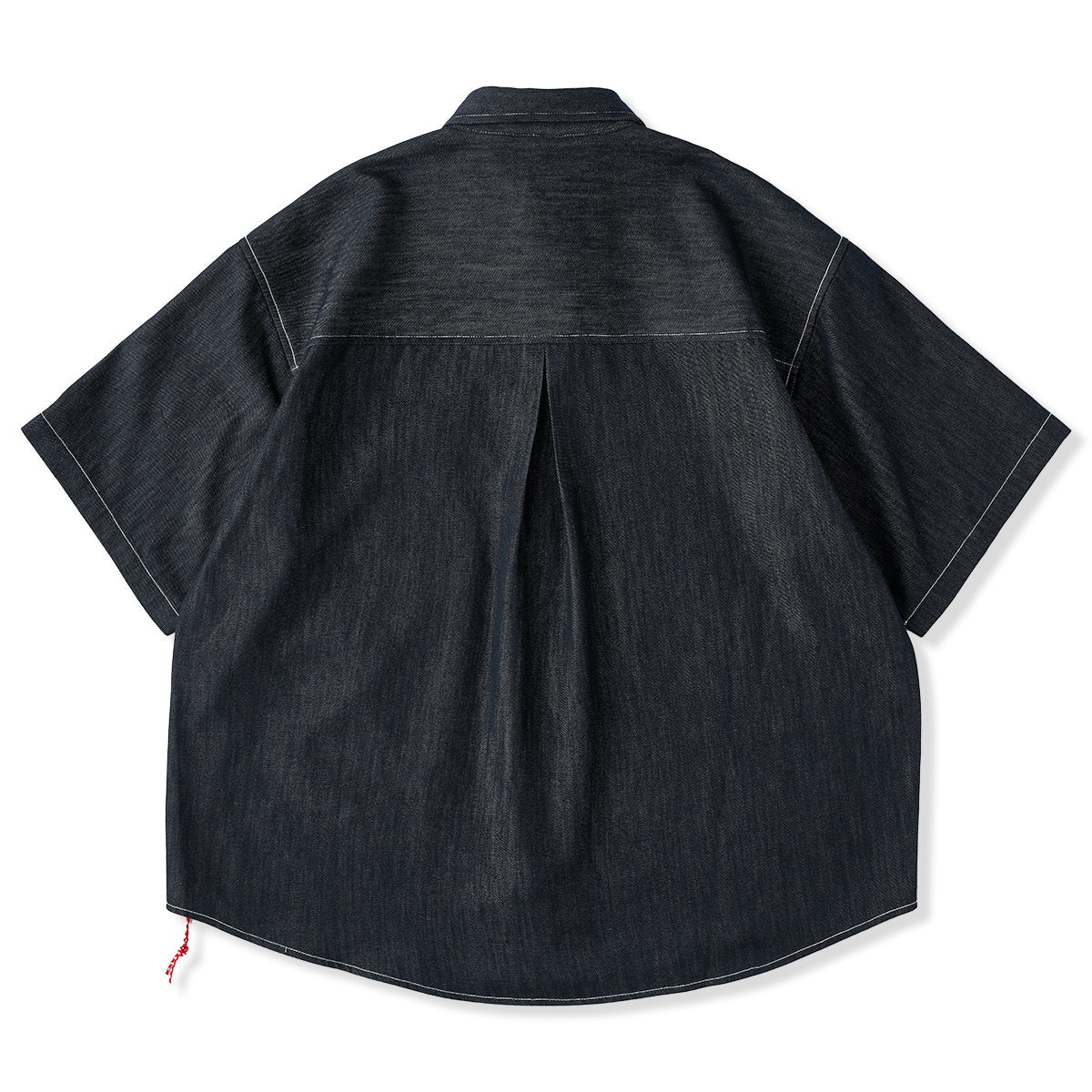 밀리터리 ‘해군 CPO 셔츠’를 여름용 반팔 데님으로 재해석했으며, 여유로운 실루엣과 큰 플랩 포켓, 닻 모양 앵커 버튼으로 해군 감성을 담았습니다.