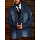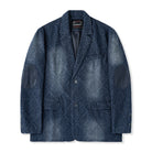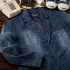 팔꿈치 스웨이드 패치 자카드 짜임 데님 테일러드 자켓