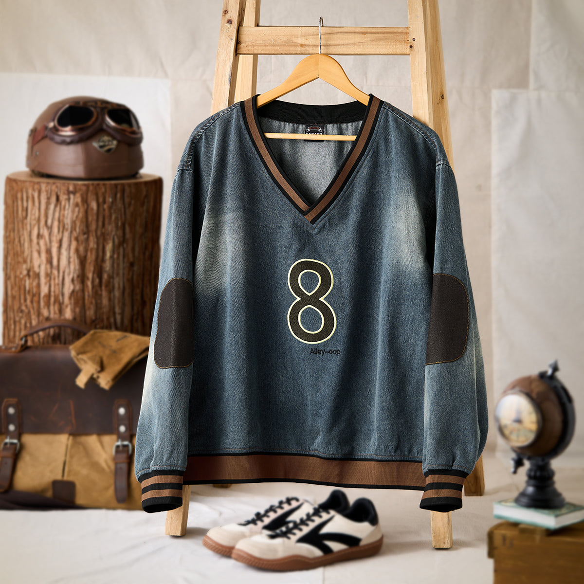 No.8 Alley Oop Elbow Patch Washed Sweatshirt