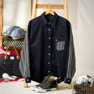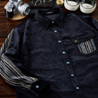 터키석 단추 믹스 소재 패치 코듀로이 셔츠