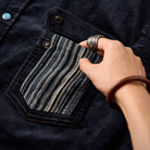 소매와 가슴 포켓에 더해진 스트라이프 원단은 부드럽고 은은한 광택이 감도는 고급스러운 질감이 돋보입니다.