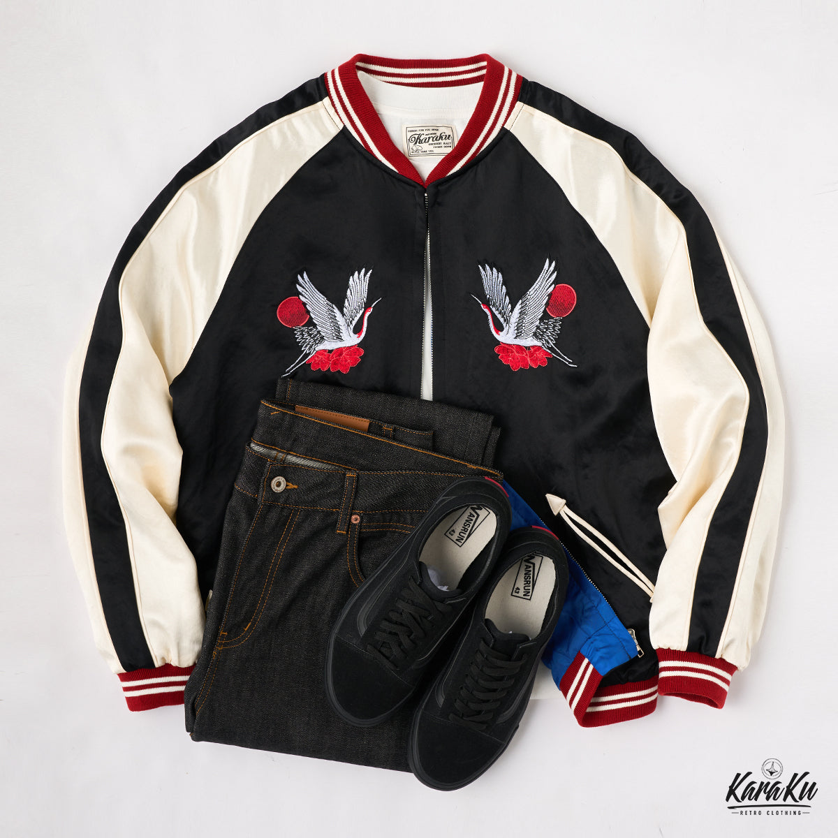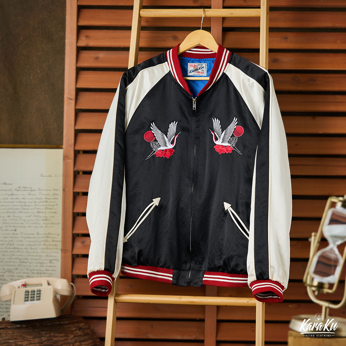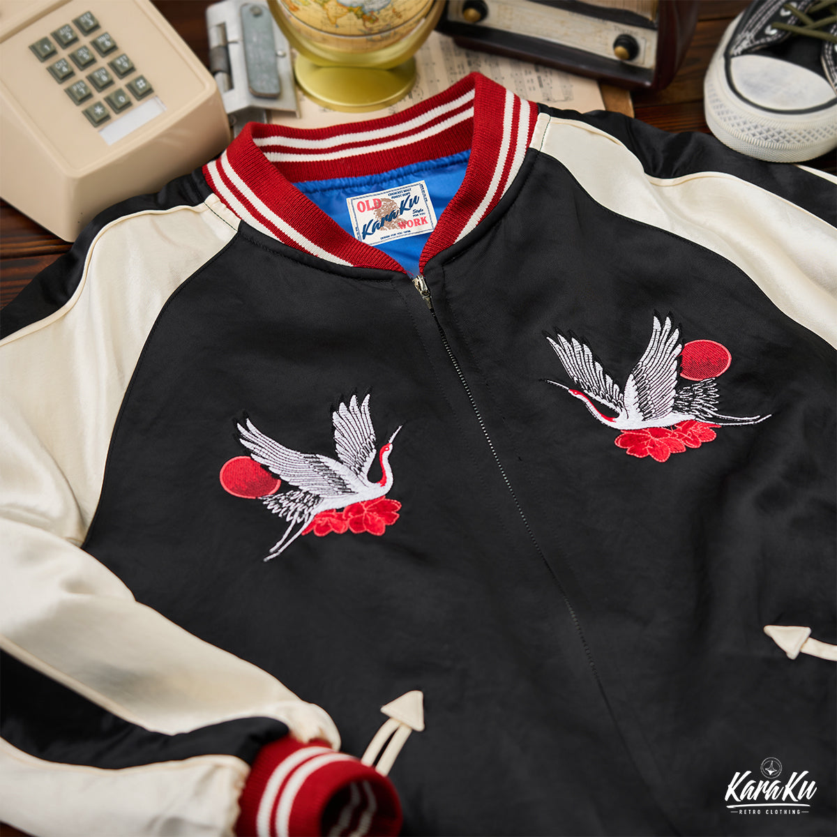 Yokosuka "Rising Sun and Cranes" Ukiyo-e embroidery sukajan