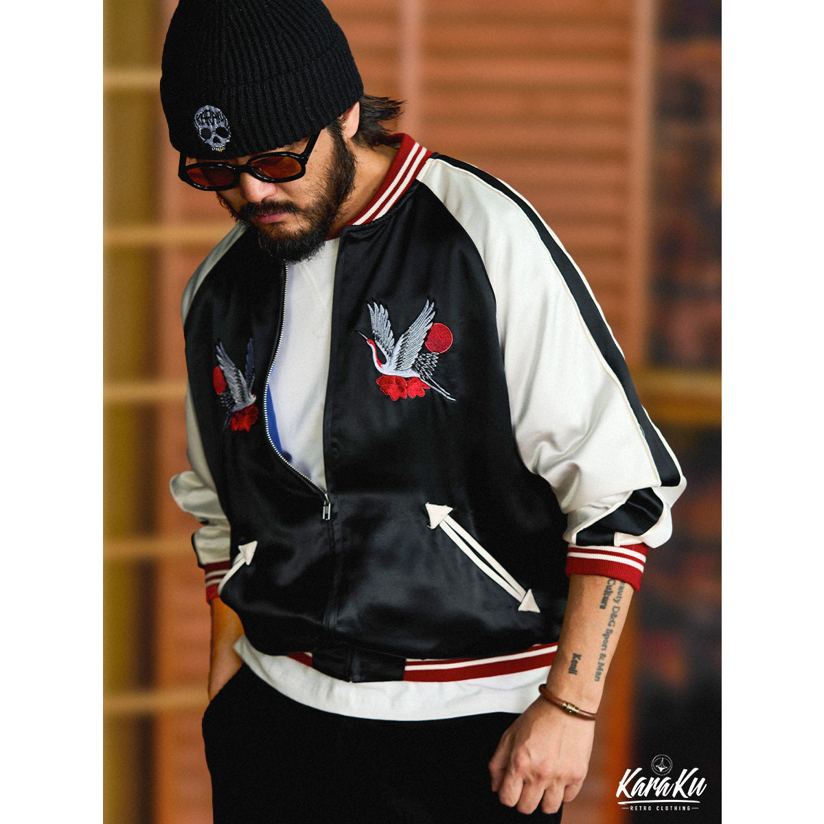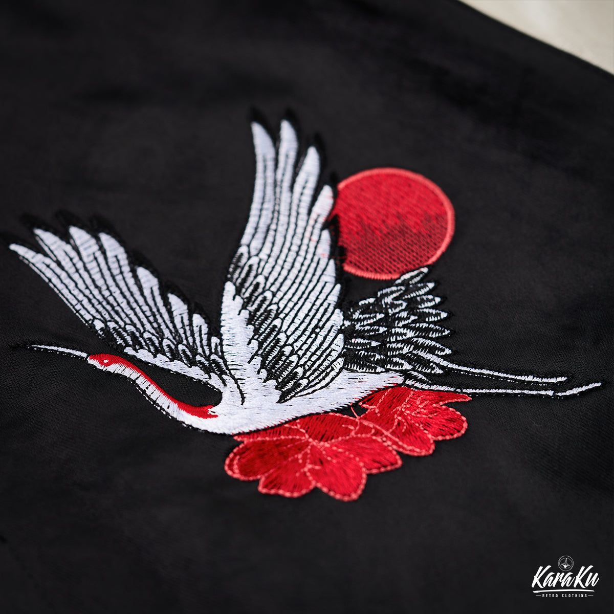The 'Rising Sun Crane' embroidery placed symmetrically on the front chest emphasizes stability and harmony.