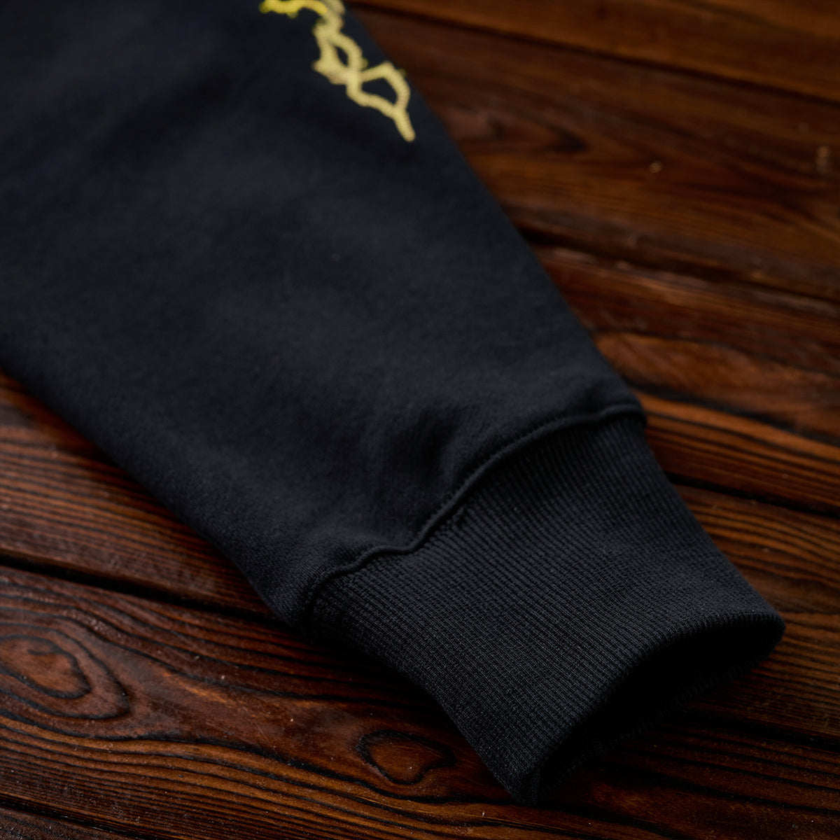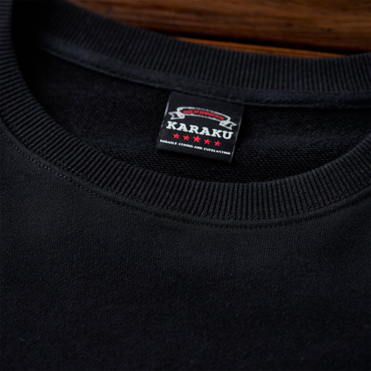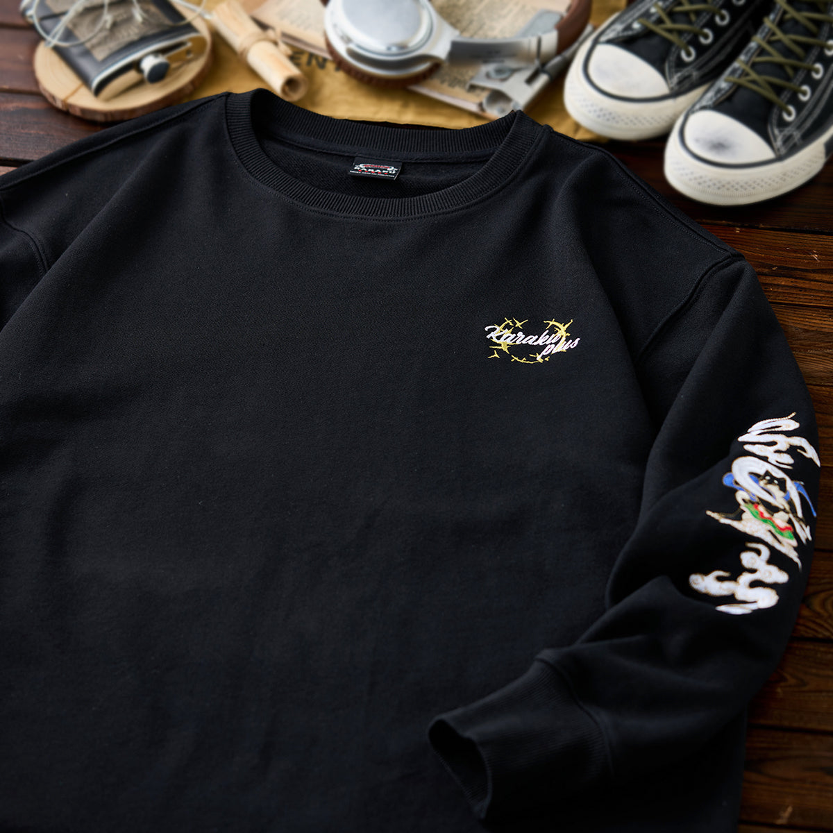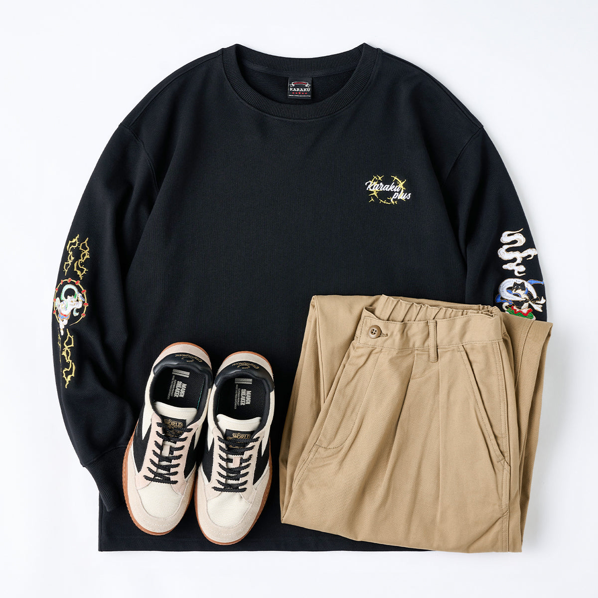 전통과 유머가 어우러진 독특한 자수 아트가 돋보이는 크루넥 롱 티셔츠로, 리브 처리로 전체 실루엣이 깔끔하게 완성됩니다.
